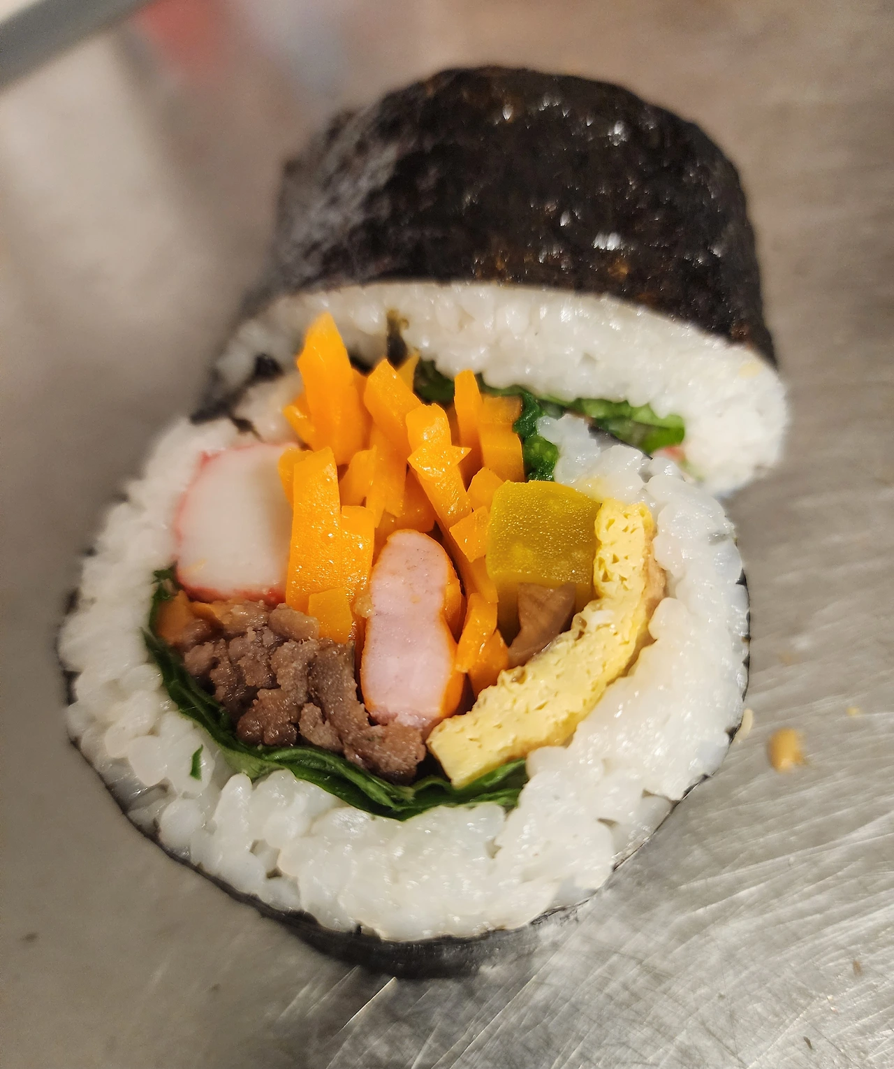 재료가 대체로 다르니 시중에서 쉽게 사 먹을 수 있는 김밥들과는 맛이 조금 차별화가 있을 뿐, 단단히 말리지도 않고 뭔가 아마추어 스러운데가 있죠. 1년에 단 한 번 특별한 주문에 의해서만 생산하고 있어서 손이 매번 새로운 요리를 하는 듯 그 때 그 때 결과물의 모습이 다릅니다. 재료 조합도 매년 바뀌고, 제 상태도 마음가짐도 그 때 그 때 차이가 있죠.