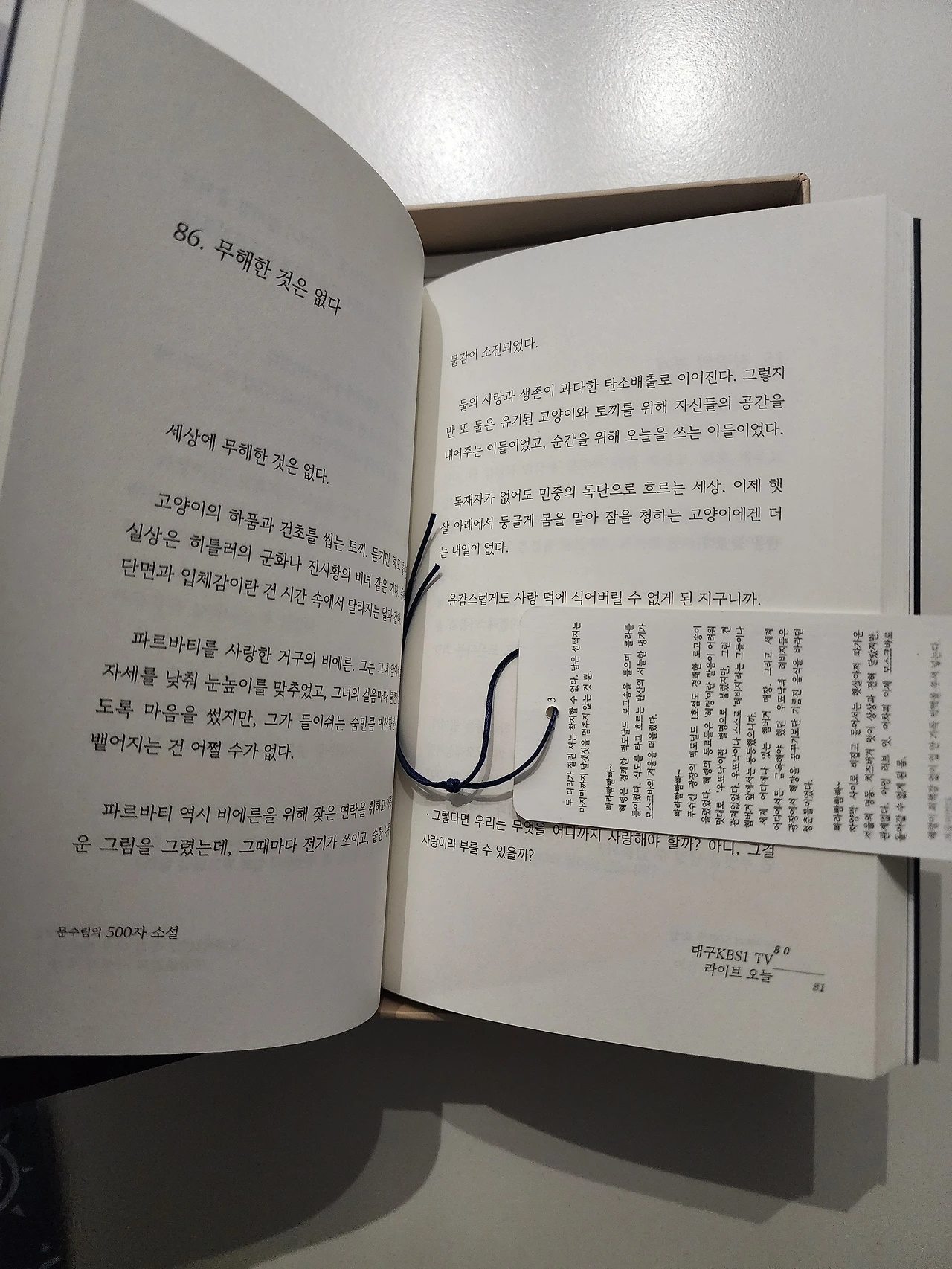 500자 소설은 스레드 글자수 제한에 딱 맞춰 엽편보다 더 짧고, 저 사진 속에 보이는 책 2페이지 안에서 한 편의 소설 이야기가 펼쳐져요. 저는 제 삶이 이미 충분히 막장 소설 같고 자주 정신 못차리겠어서 그런지 제 이야기를 꺼내고 싶은 욕망이 아주 커서, 소설은 잘 못 쓰겠더라구요. 그러니 제가 소설가를 보는 시선은 '아주 대단한 작자들'인 셈입니다.