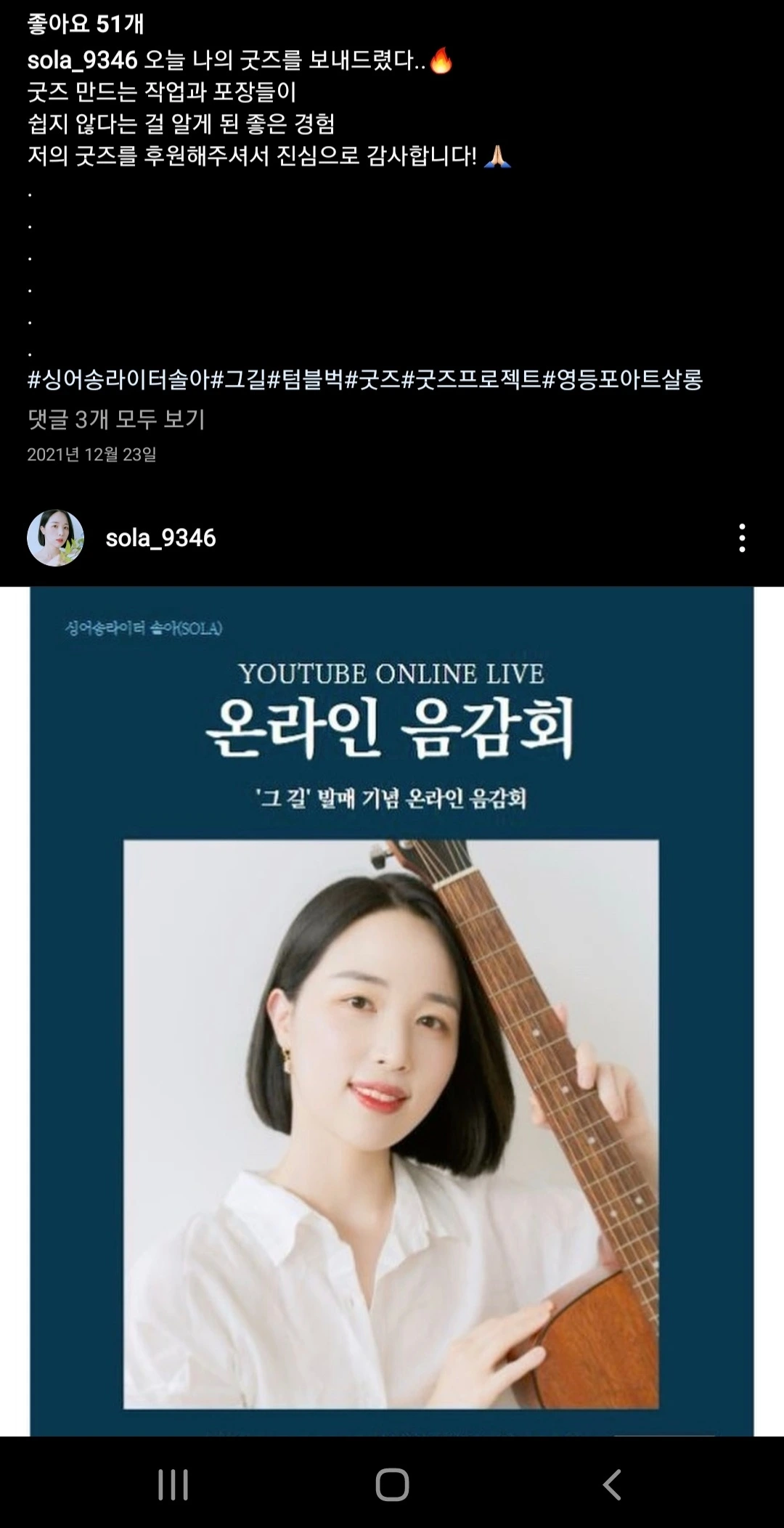 #유튜브라이브방송#싱어송라이터솔아
