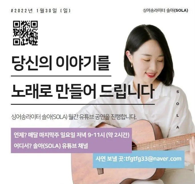 안녕하세요! 싱어송라이터 솔아(SOLA)입니다.