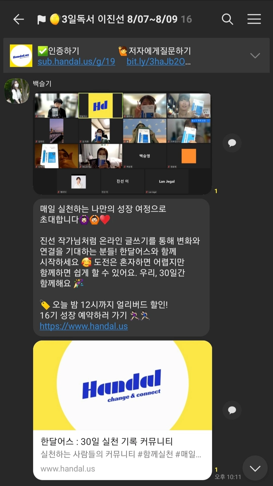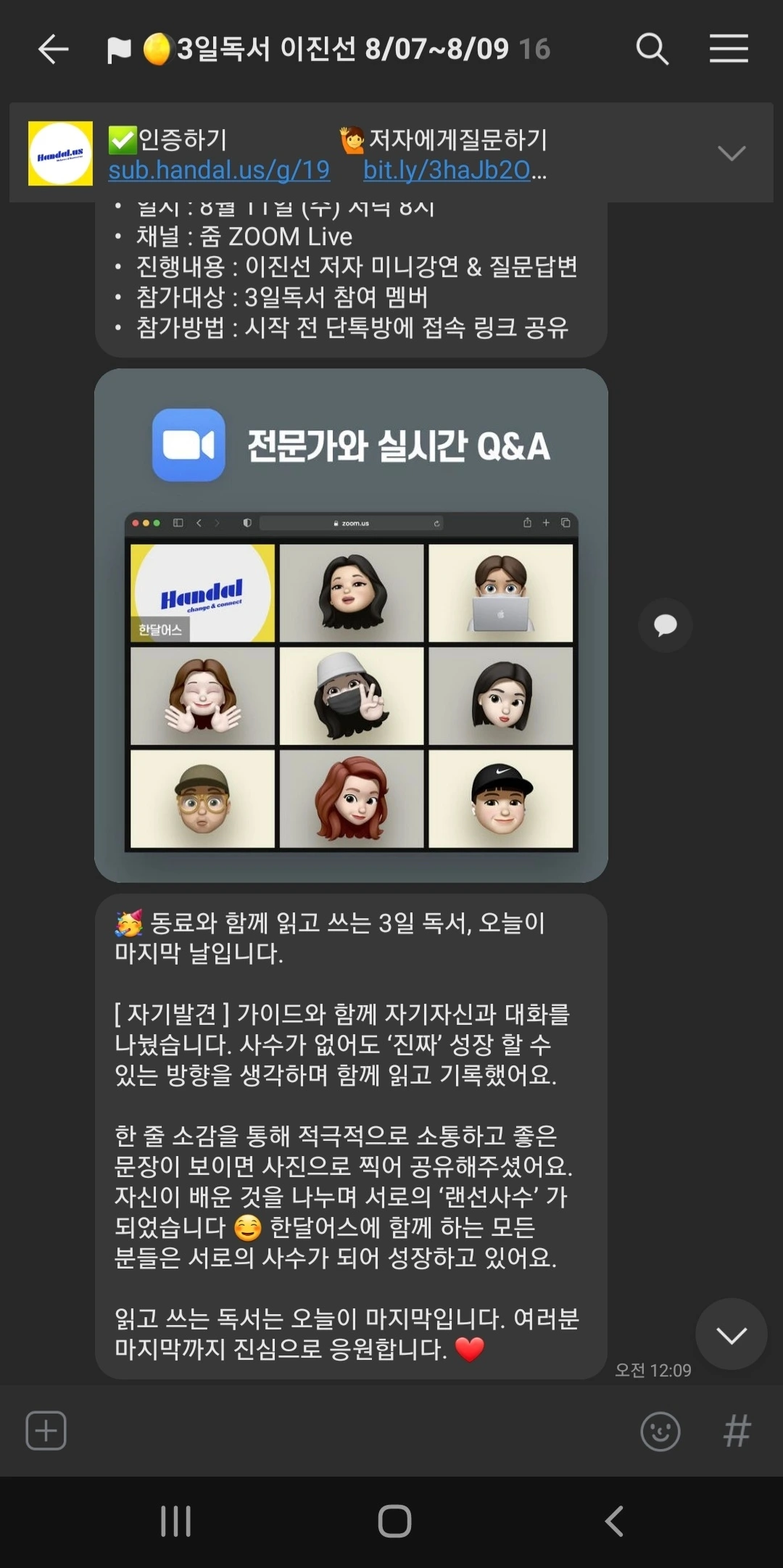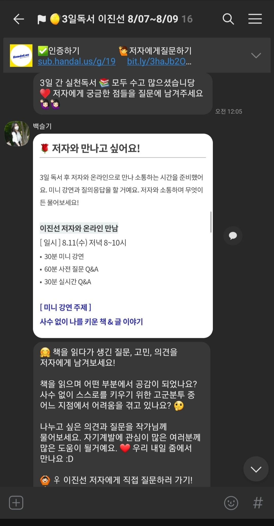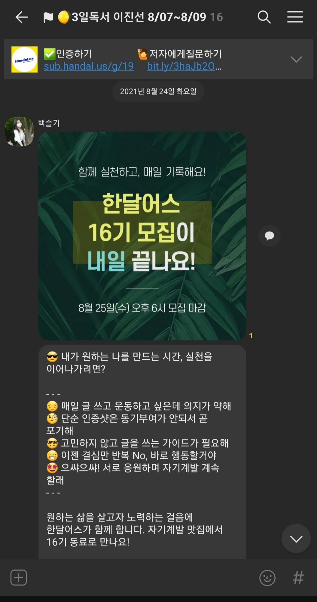 하루라도 빠지면 벌금 패널티가 있는 일반적인 독서모임이 솔직히 내 들쭉날쭉한 여유 시간을 쪼개 몰아서 2일 전후로 한 번에 쫙 보고 끝장을 보고 덮는 독서 패턴과 안 맞아서 굳이 참가비까지 내고 참여할 이유는 없었다.