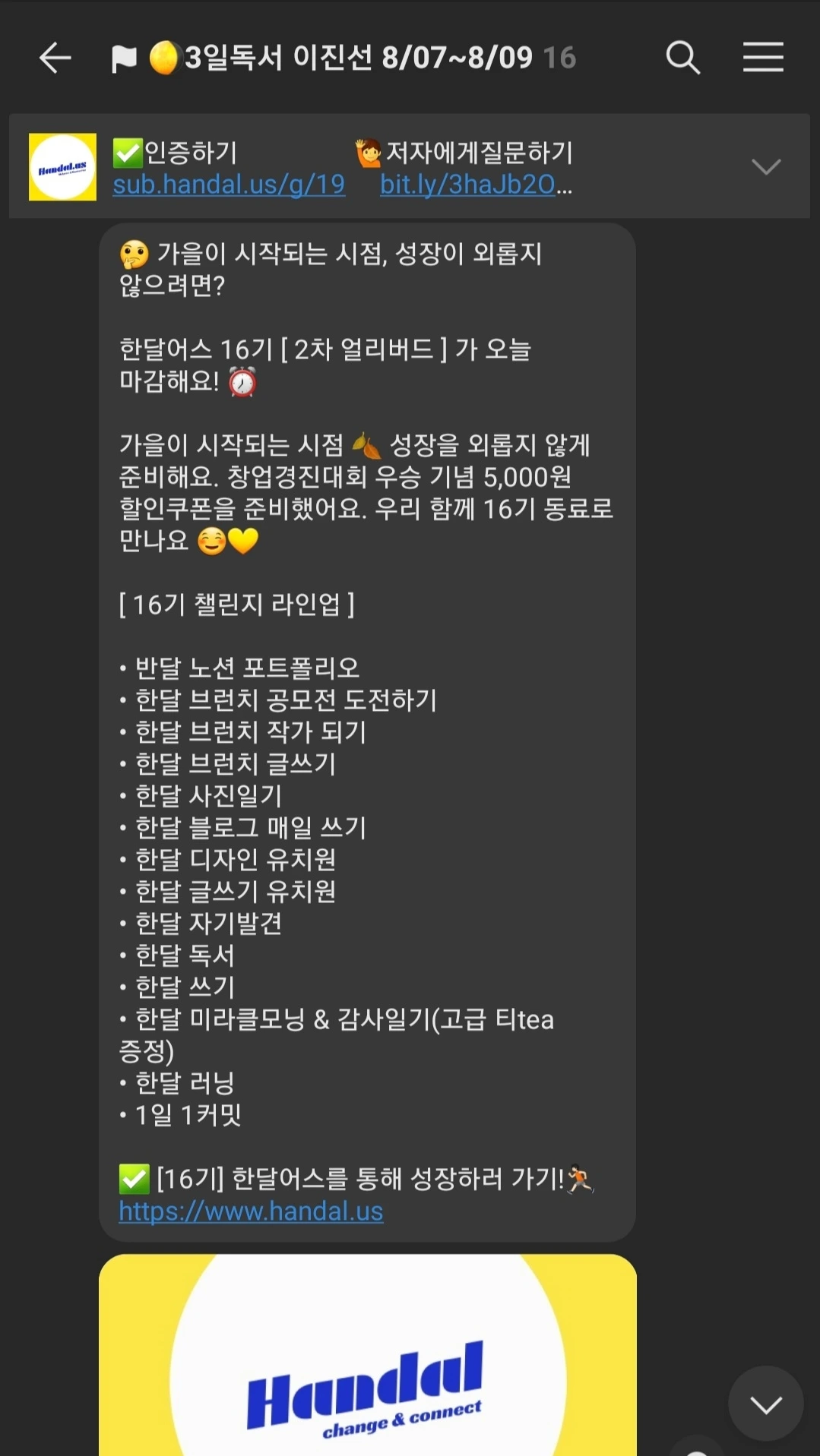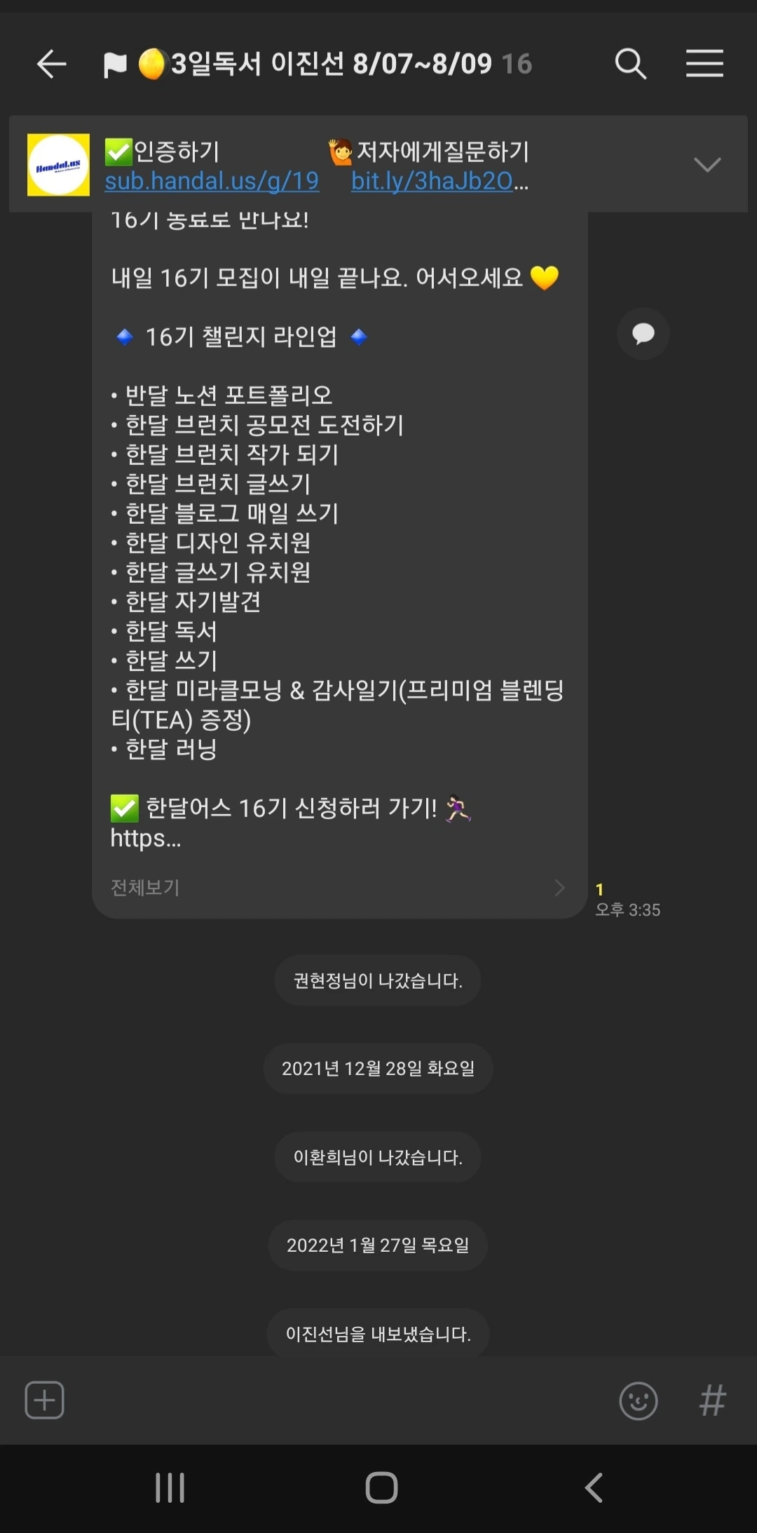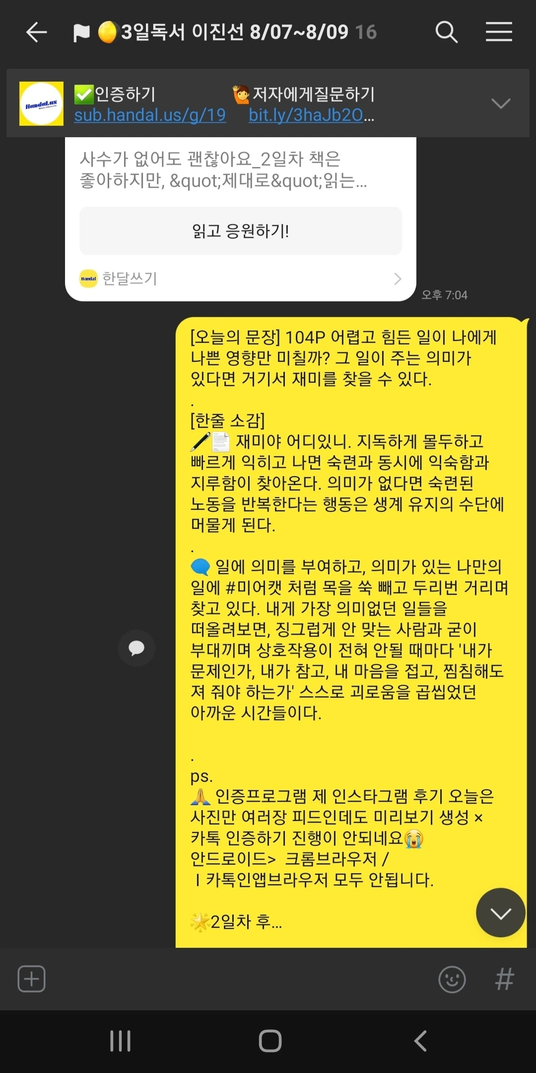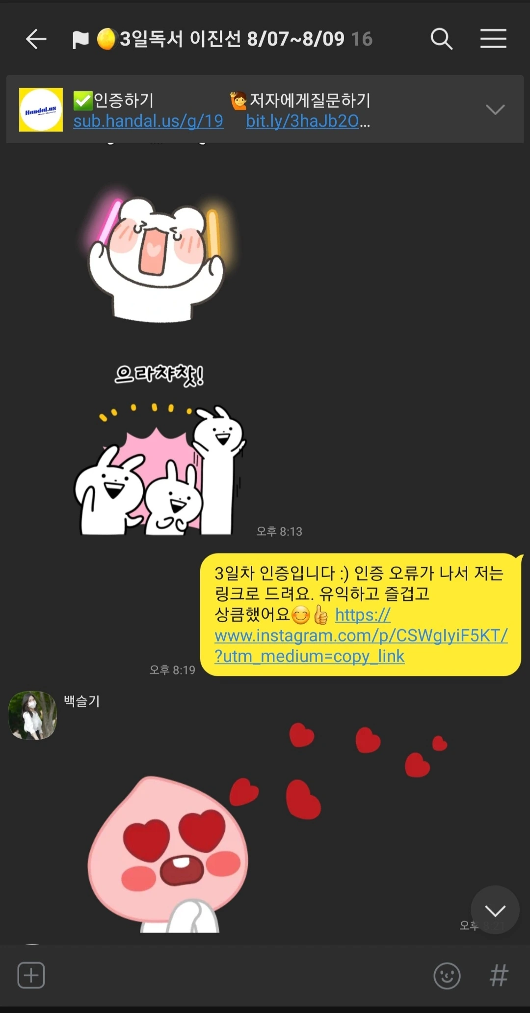하루라도 빠지면 벌금 패널티가 있는 일반적인 독서모임이 솔직히 내 들쭉날쭉한 여유 시간을 쪼개 몰아서 2일 전후로 한 번에 쫙 보고 끝장을 보고 덮는 독서 패턴과 안 맞아서 굳이 참가비까지 내고 참여할 이유는 없었다.