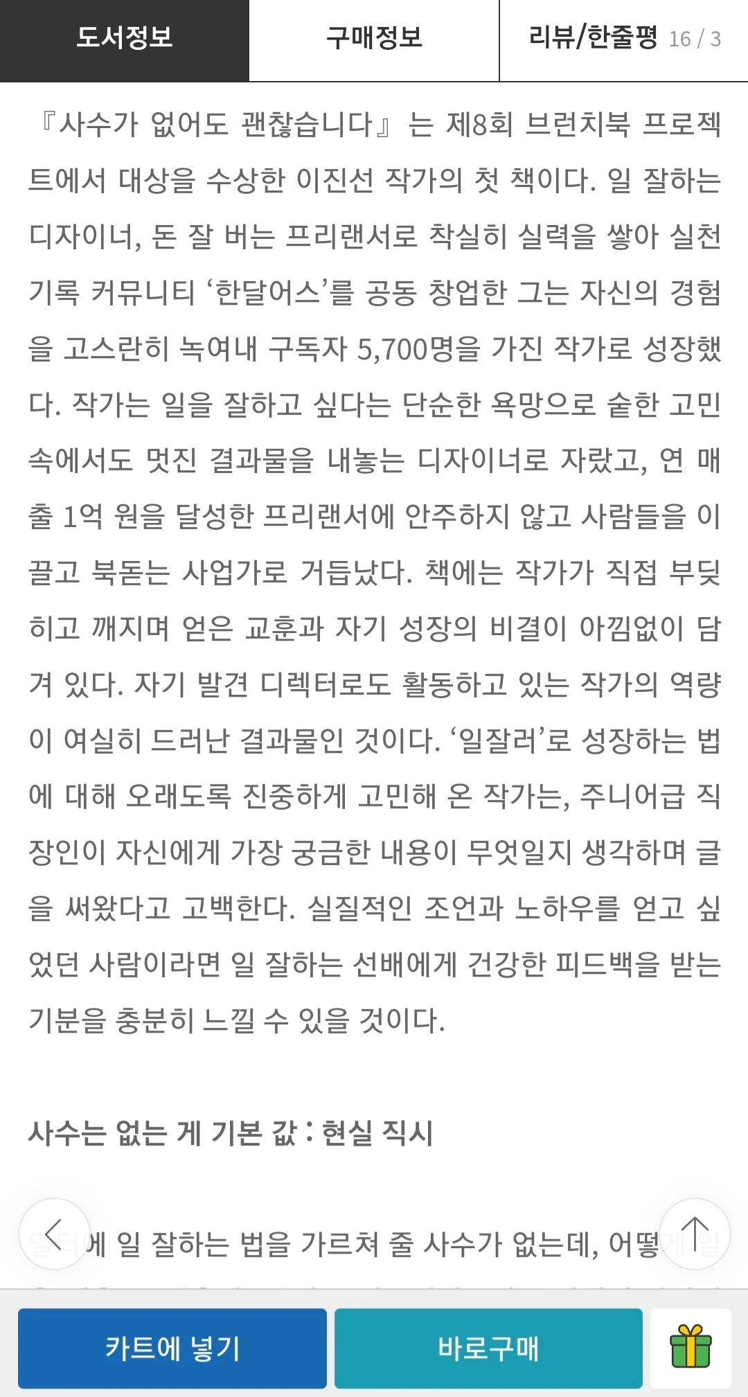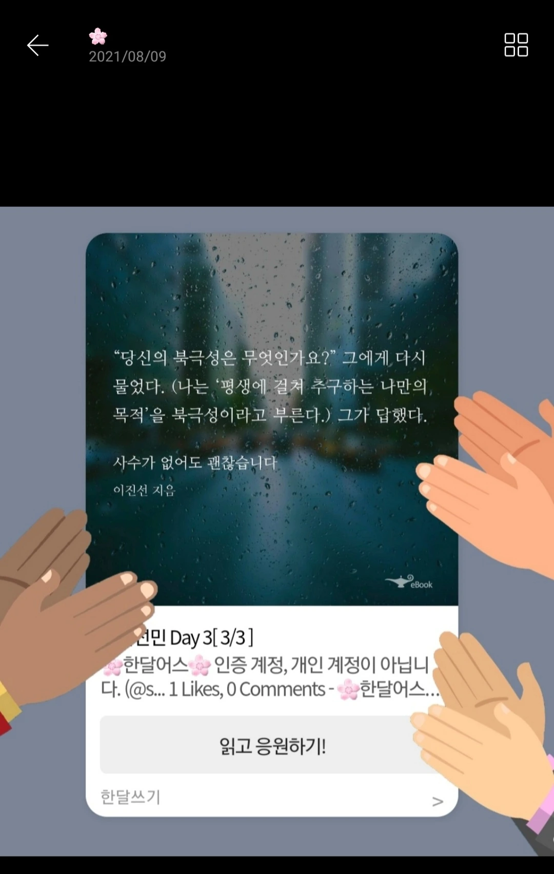 책을 꼭 사야할 이유를 찾는 것보다 안 사도 될 이유를 대는 것이 당시 내 상황에서는 훨씬 더 쉬웠지만, 당시 굳이 이 책을 꼭 사야지 생각한 이유는 단하나, 한달어스가 준비한 #삼일어스 에 꼭 참여해 보고 프로그램을 짧게나마 경험해 보고 싶었기 때문이었다.