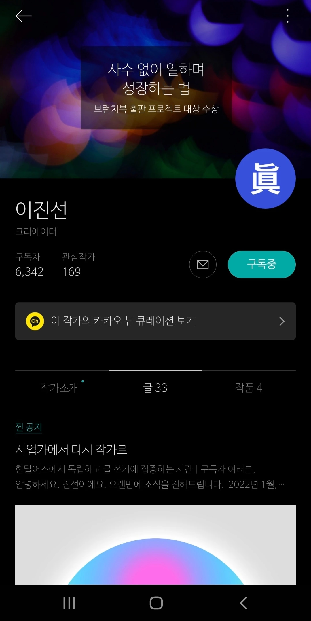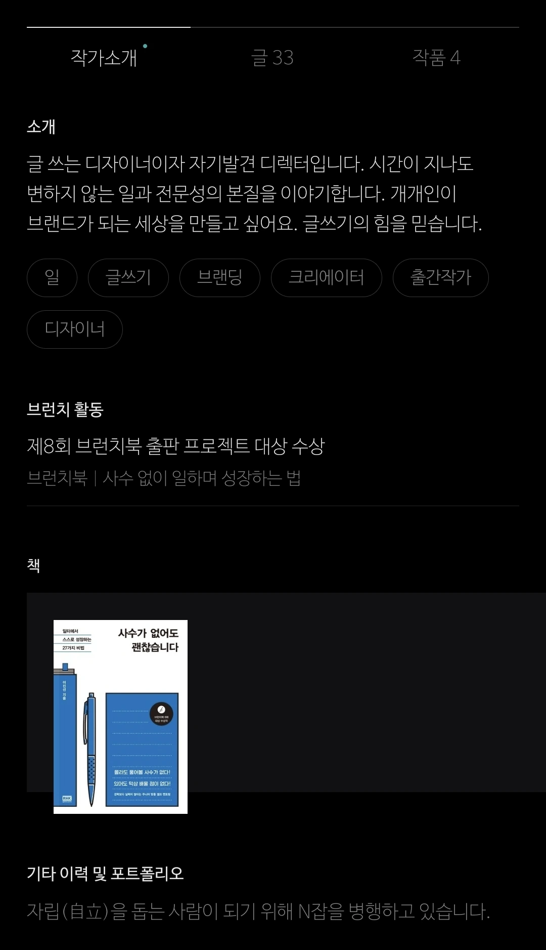 브런치 대상 수상자의 글은 이미 전문이 온라인으로 발행되어 있고, 책으로 발간되면 브런치 공개된 내용이 그대로 똑같이 책으로 형태만 바꿔서 게시되는 게 아닌가? 싶었는데, 출판은 출판사와 함께 하는 프로젝트인 만큼 브런치 내용에 책에서만 볼 수 있는 내용을 추가로 더해서 알찬 책으로 발간되었더라.