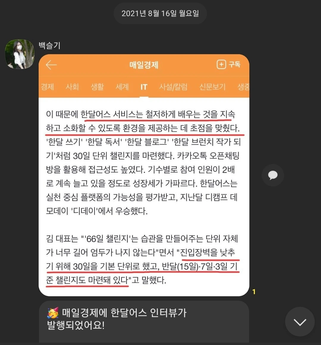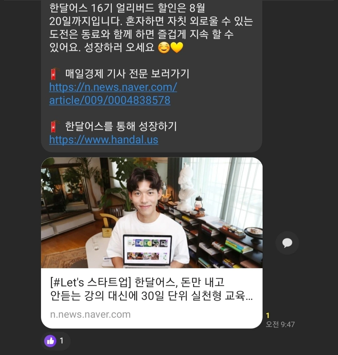 그렇게 좋은 경험을 하고 나서는 한달어스를 어느 곳에 가서도 당당히 추천할 수 있게 됐다.