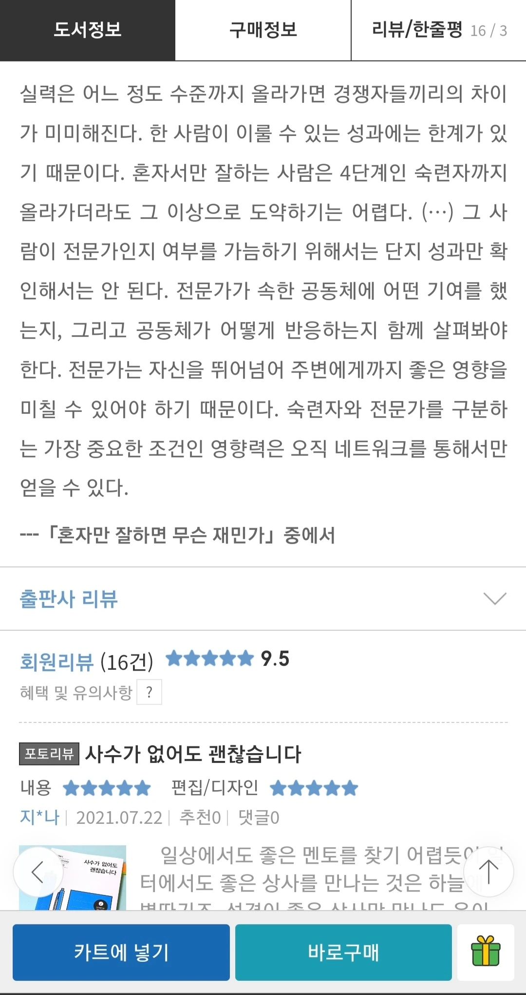 대부분의 책이 내용이 무척 좋으니까 인쇄 출판까지 된다고 보면, 내용이 좋으니까 사는 것은 기본으로 깔고 보자.