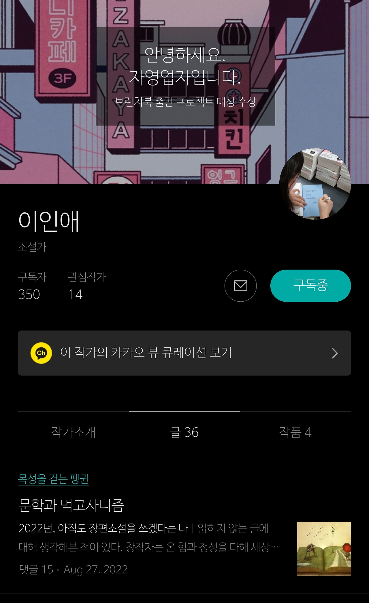 #이인애작가 #브런치북 #안녕하세요자영업자입니다 #브런치대상