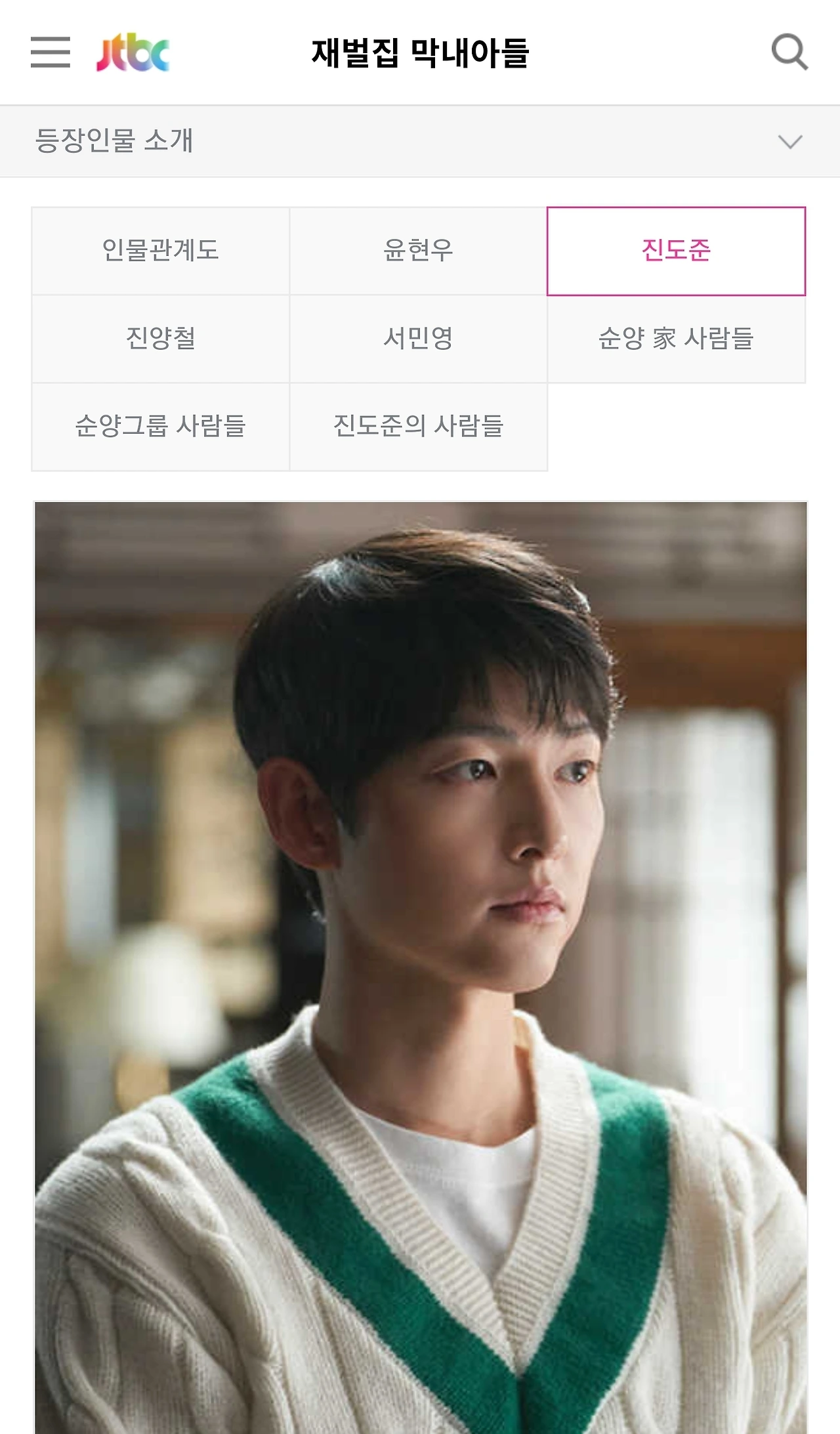 진양철 이성민 순양그룹 회장 (남/60대~70대) 상대를 꿰뚫어 보는 눈빛과 한 치의 빈틈도 허락지 않는 꼿꼿한 인상. 나이답지 않게 다부진 몸. 정미소에서 시작해 순양을 재계 1위에 올려놓았다. 그의 ‘3 心’ 덕분에- 욕심, 의심, 변심. 이제 그는 순양을 잘 이끌 후계자가 필요하다. 하지만 눈에 차지 않는 삼남매만 있을 뿐. 그런데 순양 家를 떠났던 막내가 돌아왔다. 제 아들 진도준과 함께. 그는 한눈에 알아봤다. 막내손자가 자신을 닮았다는 걸- 승부근성, 결단력, 가차 없는 냉혹함까지.