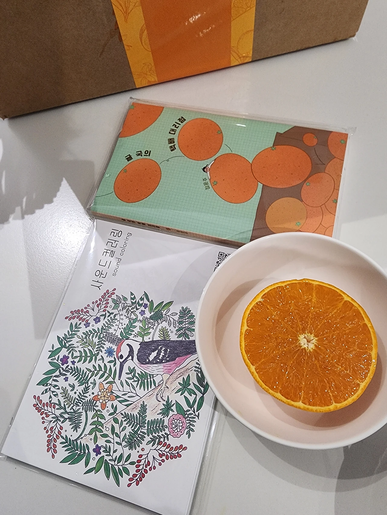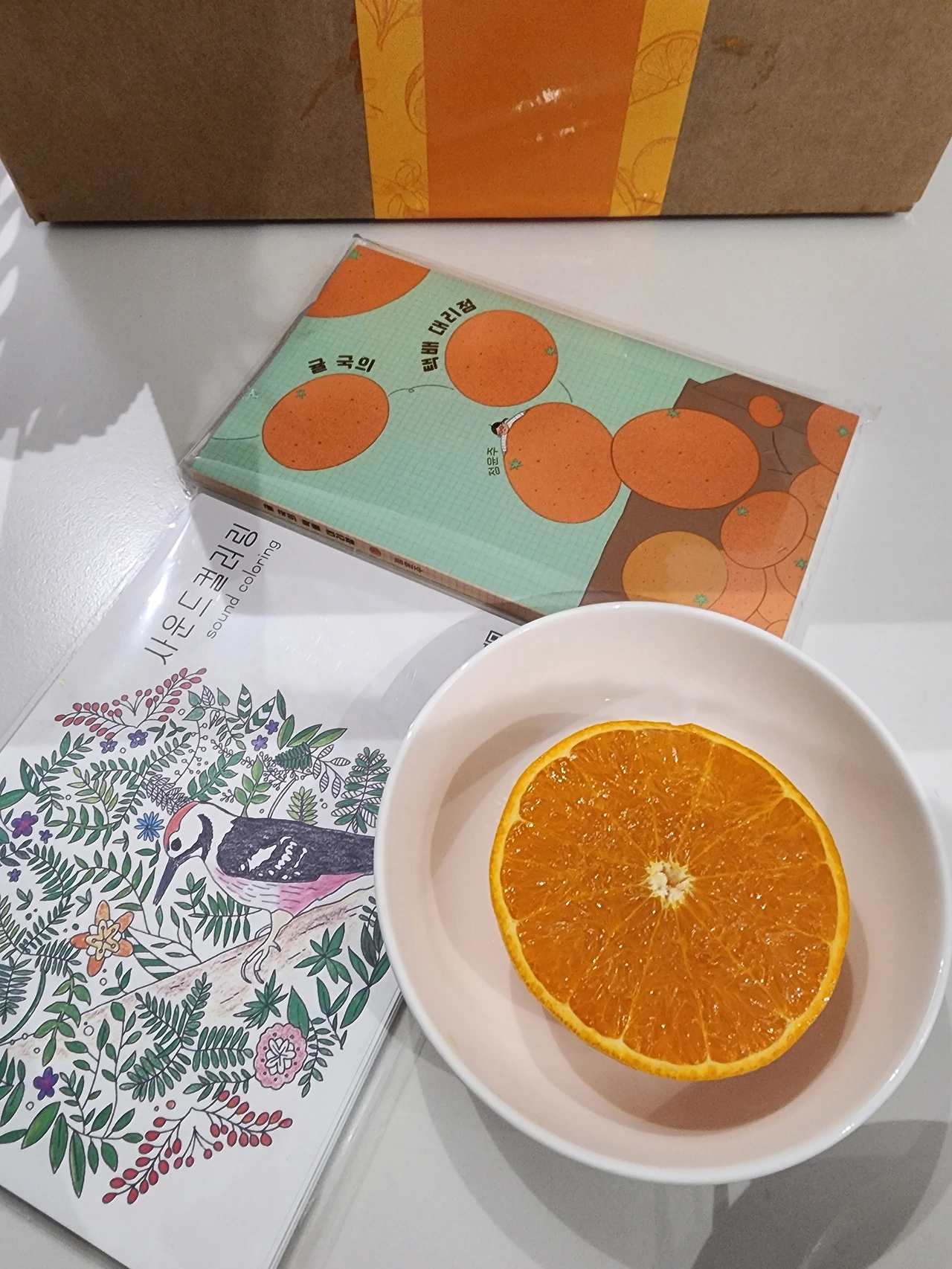 정윤주 작가님의 책을 리디북스 전자책으로 휘리릭 다 읽고, 천혜향과 책을 나중에 받았는데 책도 너무 귀여운 크기다.