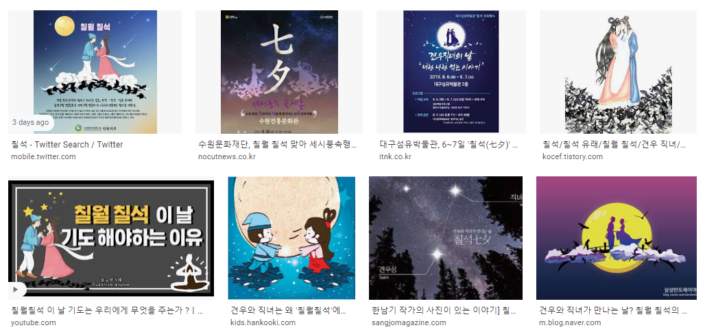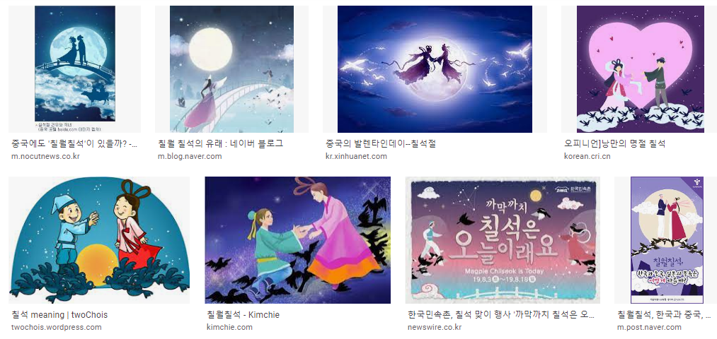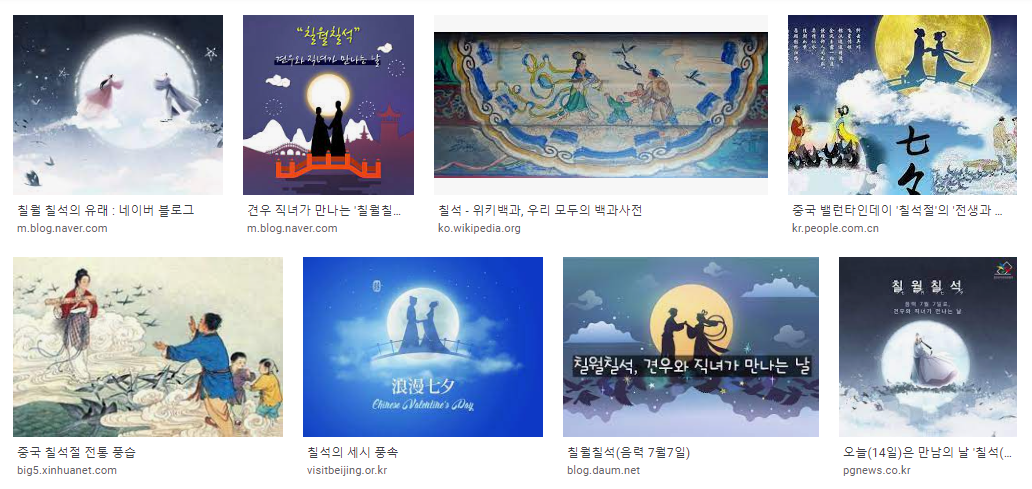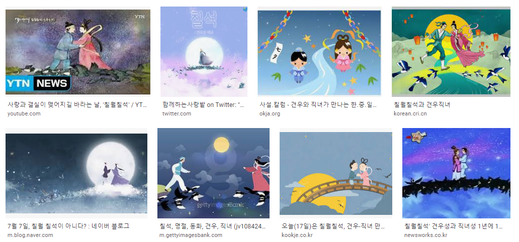 그리고 칠석에 관한 그림들을 구글에서 찾아보면 이런 것들을 볼 수 있다.