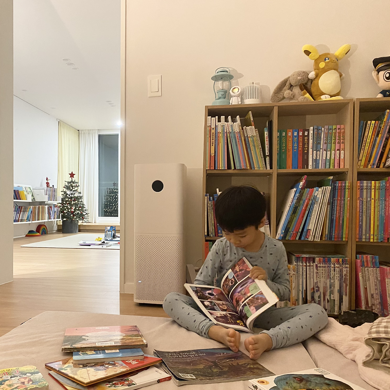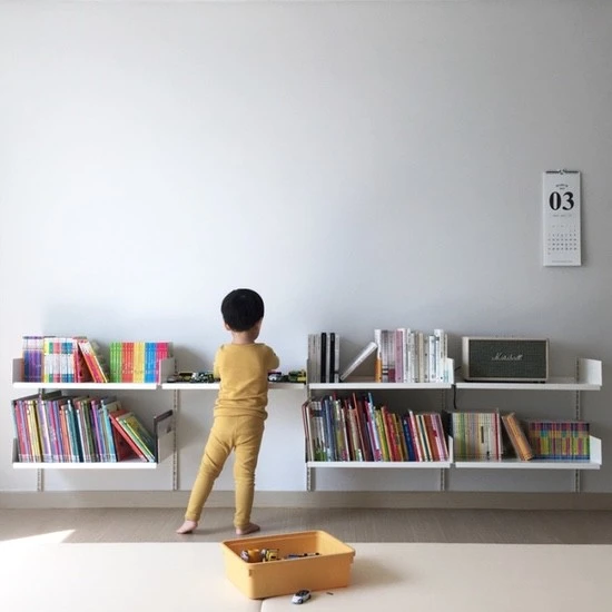 아이의 눈높이와 아이의 스케일에 맞는 낮은 편안한 책장 두기