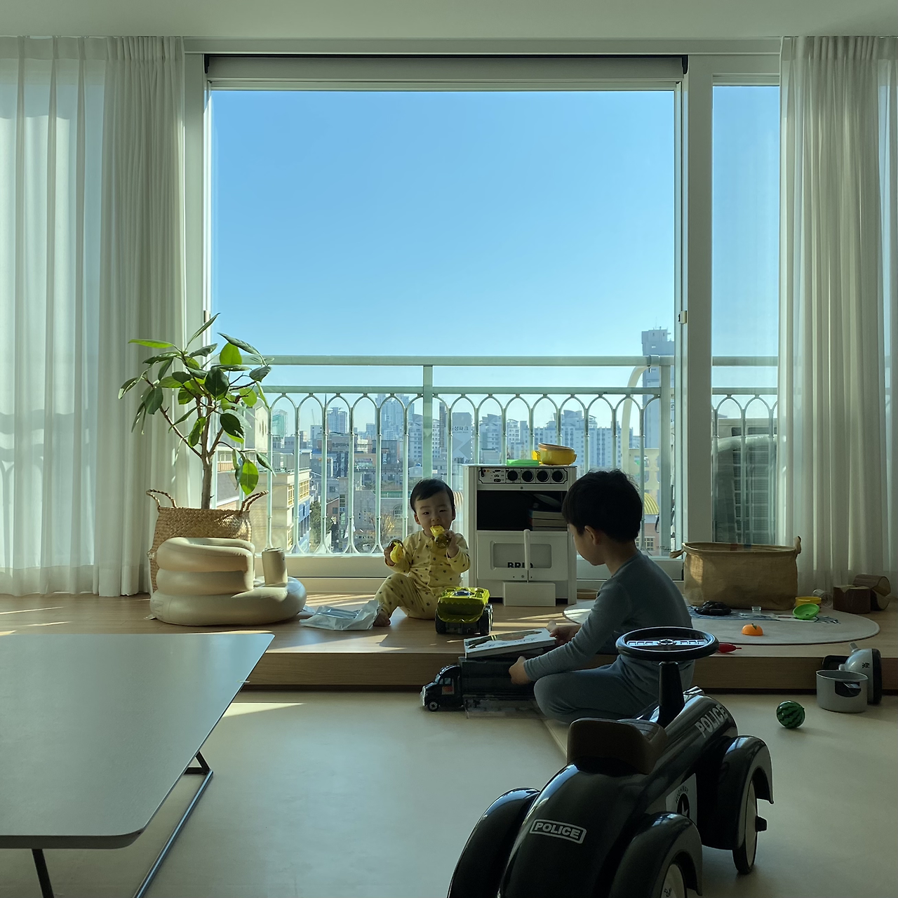 하지만 지금 그 공간은 작은 아이의 놀이터가 되었다. 아침에 눈을 뜨면 그곳으로 올라가 바쁘게 움직인다. 전날 가지고 놀던 장난감을 이어 가지고 놀고, 가끔은 앉아서 창밖을 보기도 한다.