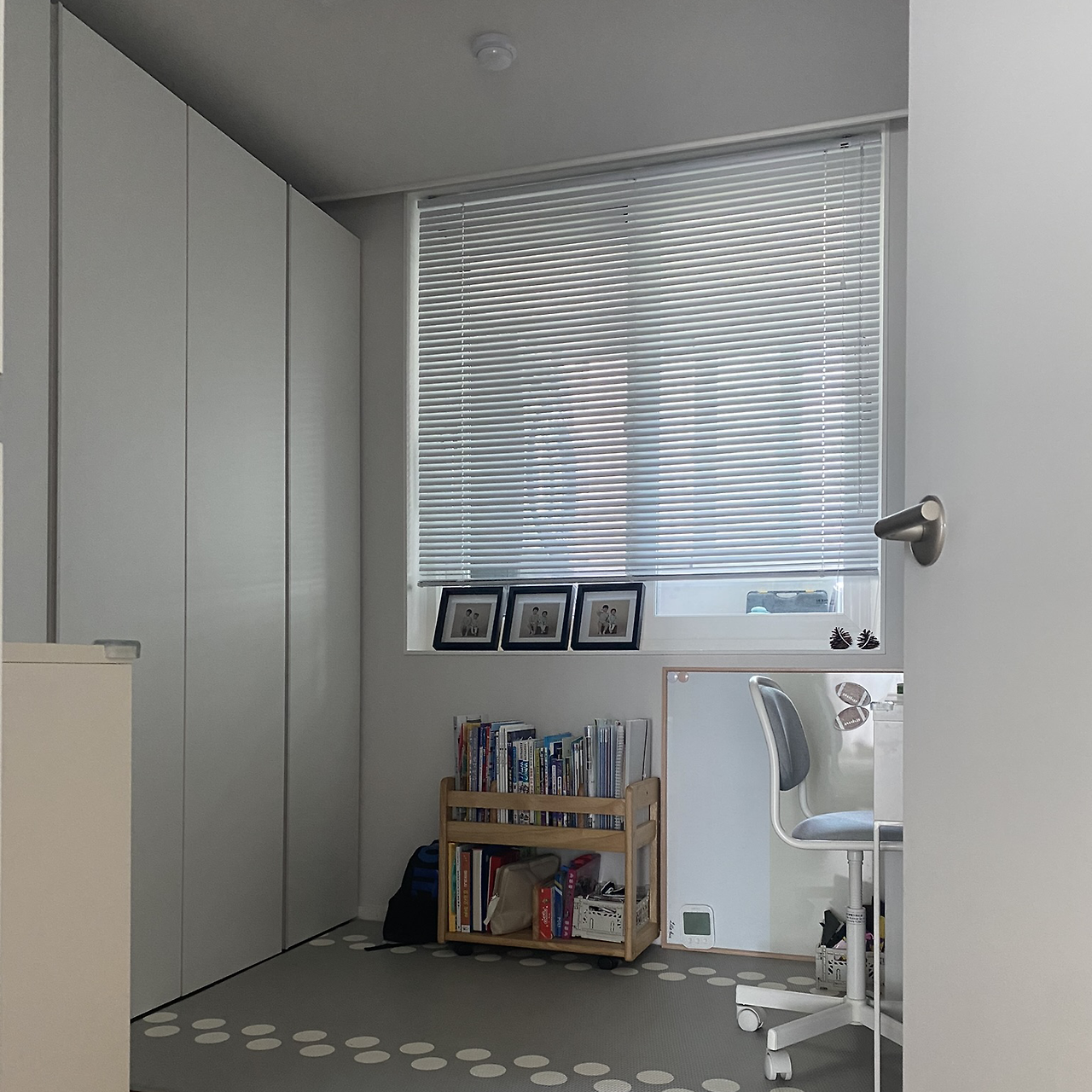 서재와 일부 옷방의 기능을 했던 가장 작은 방은, 잠시 큰 아이의 공부방이 되었다가 장롱을 옮기고 두 아이의 포근한 침실로 바뀌었어요.