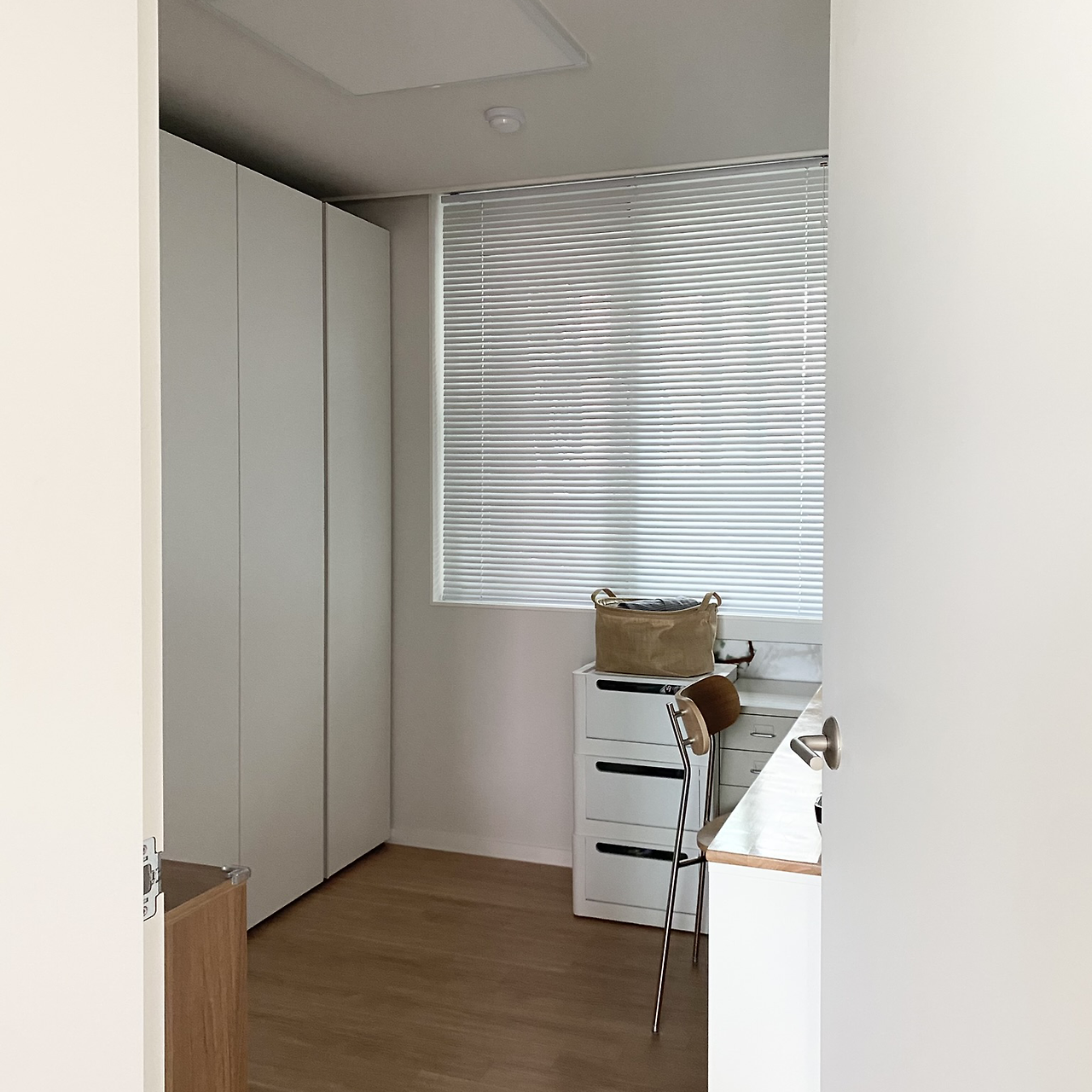 아이와 함께 침실의 기능을 온전히 했던 안방에서 아이를 독립시키고, 부부만의 공간으로 옷방 겸 침실 겸 서재가 되었습니다.
