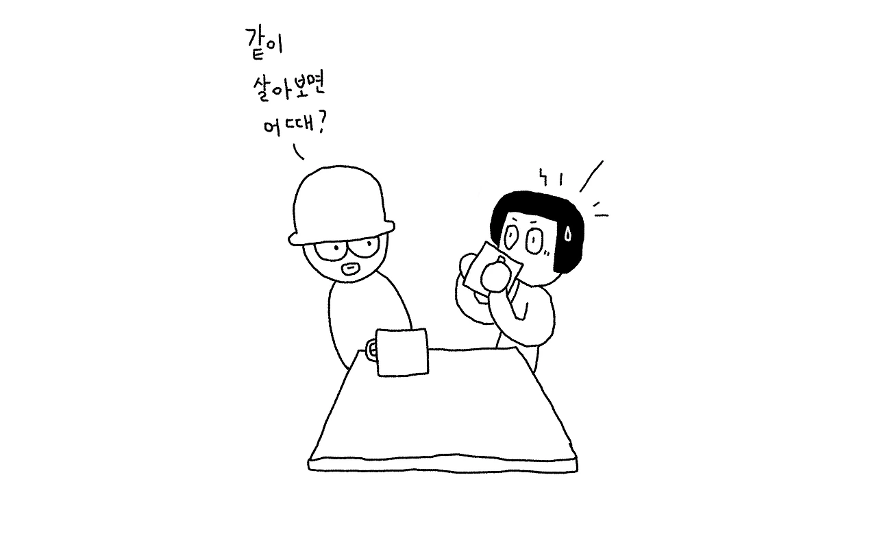 머리로는 알았다. 설쌤에게 같이 살아보면 어떻냐는 말은 그렇게까지나 중대한 고백이 아니라는 걸. 서울살이 하는 누구나 그렇듯 주거 고민 끝에 떠올린 한 가지 묘안이었을 것이다. 프리랜서 일러스트레이터인 설쌤은 그 당시 따로 거처 없이 작업실 한 켠에 마련된 잠자리에서 하루하루 생활을 때우고 있었다. 작업실 근처에서 꽤 오랫동안 집을 탐색하고 있다는 건 알았다. 하지만 예산 안에서 마땅한 곳을 찾기란 쉬운 일이 아니었을 테고, 예산의 파이를 늘릴 수 있는 방법을 찾다 나와 함께 사는 방법까지도 떠올린 모양이었다. 다시 말하지만, 머리로는 모든 상황을 이해는 하고 있었다. 그저 '아' 다르고 '어' 다른 말하기의 기술을 터득하지 못한 설쌤의 솔직담백함이 원망스러울 따름이었지!