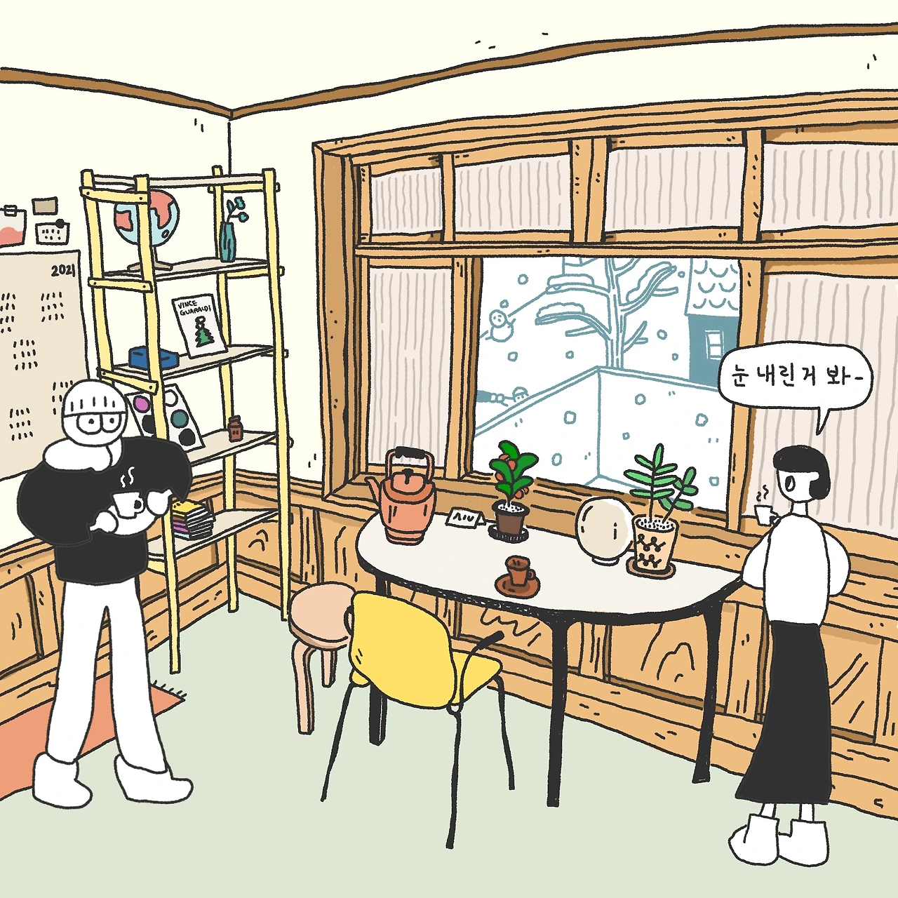 거실은 아니지만 우리집 복도 끝 천장에 그림 하나가 걸려있다. 설쌤이 그린 한 디자이너의 의자 그림이다. 복도를 지나며 그림을 볼 때마다 ‘갖고싶습니다. 언제쯤 갖게 될까요?’하고 소원을 빈다. 우린 그 자리를 위시리스트라고 부르기로 했다. 이렇게 물건이 많은데도 우린 또 새로운 물건을 갖기를 늘 소망한다. 언젠가 그림 속 의자를 갖게 되면 또 다른 그림이 저 자리를 차지하겠지. 하, 그 그림은 또 무엇으로 채워넣을까? 이런 류의 상상은 해도 해도 늘 즐겁다. 맥시멀리스트로 살고 있어서, 그리고 앞으로도 그렇게 살 수 있어서 행복하다.