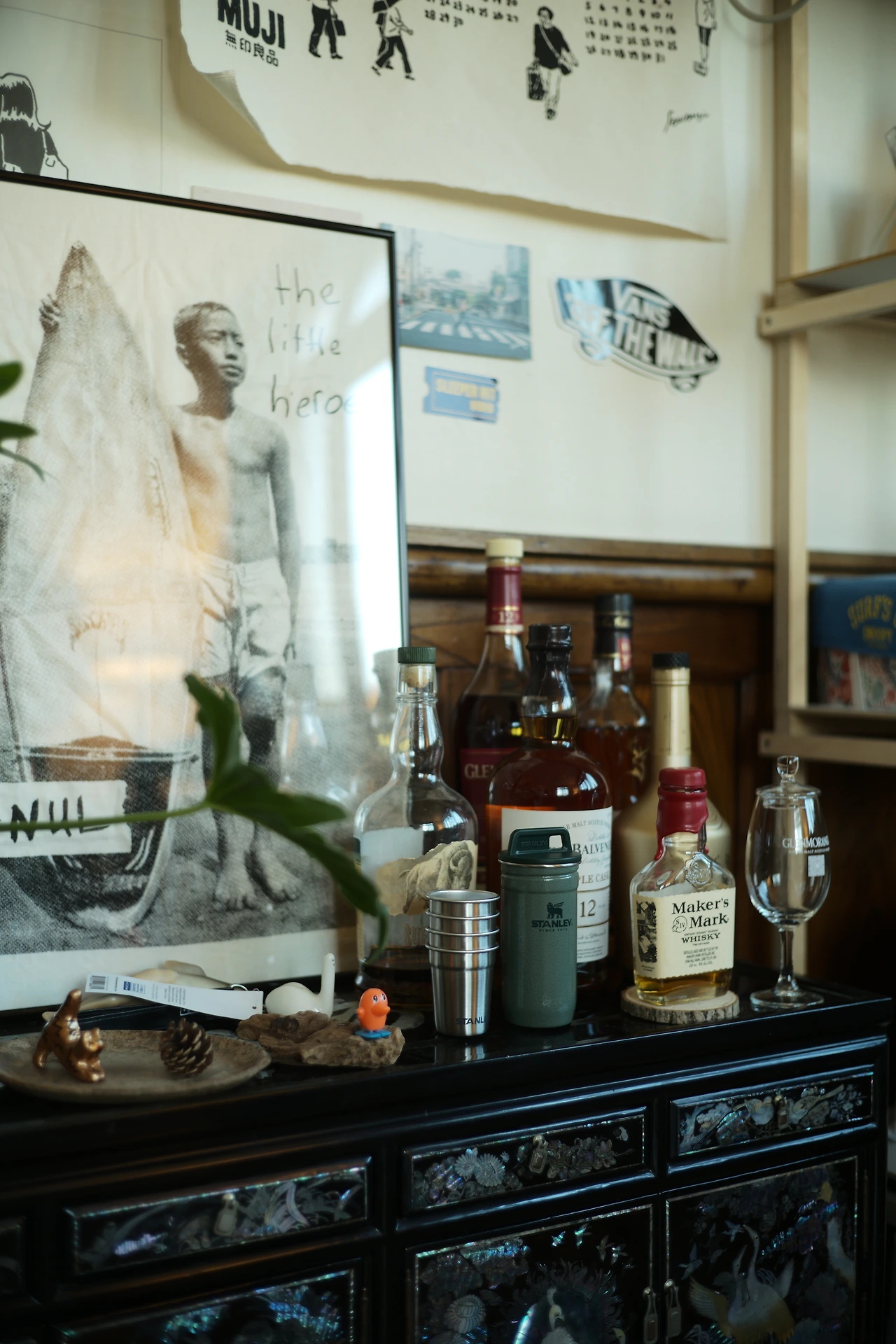 우린 술을 좋아한다. 곤란하게도 반달집에 함께 살기 시작하면서부터 술을 더 좋아하게 됐다. 우연히 접한 위스키 소개 영상에 둘이 동시에 푹 빠진 탓이다. 다시 한번 말하지만, 곤란한 일이었다. 위스키의 비싼 가격도 가격이지만, 무엇보다 부엌 한 켠에, 테이블 귀퉁이에, 복도 바닥에 쌓여가는 위스키 병들이 처치곤란이다. 도대체 위스키 병들은 왜 그렇게 쓸데없이 곱디 고운 것인지. 아니지, 고운 것이 쓸모없는 일이 되어서는 안되지. 우린 한 마음 한 뜻으로 위스키 병들을 전시하기로 했다. 마침 버릴까 말까 고민하던 할머니의 자개장을 주워와 엄중한 역할을 부여했다. 우리집 분위기를 선도하는 반장, ‘술장’이라는 역할을. 술장 위에 늘어선 위스키들은 바라만 봐도 흡족하다. 물론 맛까지 보면 황홀경이 따로 없지만! 그렇게 거실 벽면 한 쪽에 신선 노름할 수 있는 플레이그라운드가 탄생했다. 남산타워가 유난히 이쁘게 반짝이는 밤이면 설쌤과 나의 눈은 자연스럽게 한 곳으로 향한다. 좋아하는 사람이 내가 좋아하는 것을 함께 좋아해주다니. 이건 아무리 생각해도 복이다, 복!