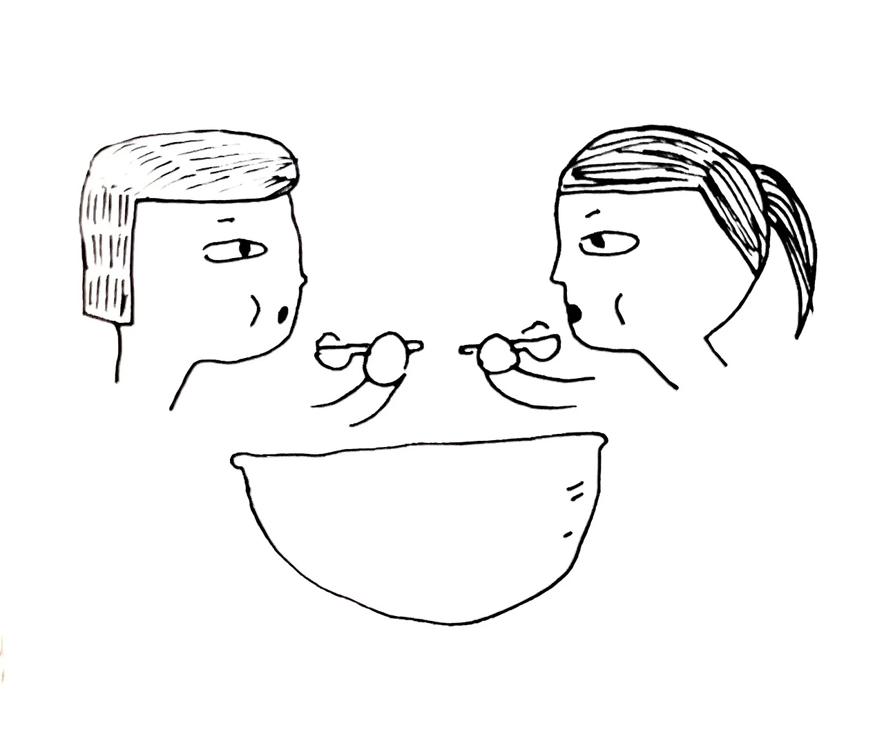 내 숟가락질에 속도를 붙이는 풍경이 하나 있다. 그건 바로 밥상 맞은편에서 열심히 숟가락질하는 언니다. 각자 그릇에 담겨 나오는 음식이 아니라 함께 펼쳐놓고 나눠 먹는 탕수육, 피자, 치킨 등을 먹을 때 상황은 더 심각해진다. 눈으로는 남은 음식을 스캔하고 손으로는 열심히 음식을 나르며 입은 쉴 새 없이 저작 활동을 진행한다. 그러다 먼저 번뜩 정신이 든 한 사람이 말한다. “우리 다 컸는데 이러지 말자.” 그럼 나머지 한 사람도 머쓱해진 나머지 준비 태세의 손을 내려놓고 그제야 입안의 음식을 꼭꼭 씹어먹기 시작한다. “그래, 둘이서 다라이 하나에 비빔밥 나눠먹던 시절도 아니고.” 한술 더 떠 서로의 그릇에 음식을 덜어주는 것으로 자매의 식탐 러쉬는 잠잠해진다. 어릴 땐 언니 입에 들어가는 그 한 숟갈이 내가 차마 먹지 못한 한 숟갈 같아 얼마나 아깝고 탐이 나던지. 형제자매와 부대껴 살아본 사람은 공감할 것이다. 내 손에 먹을 게 들려있는 와중에도 상대방 손에 들린 먹을 것이 더 탐나는 그 심보를. 배부른 게 불쾌하게 느껴지는 나이가 된 지금에 와서도 밥상머리에 마주 앉은 언니의 모습은 내 식욕 촉진제다. 어릴 때 몸에 깊게 배긴 생존 습관은 배부르고 등 따신 어른이 되어서도 좀처럼 옅어지지 않는 법이다.