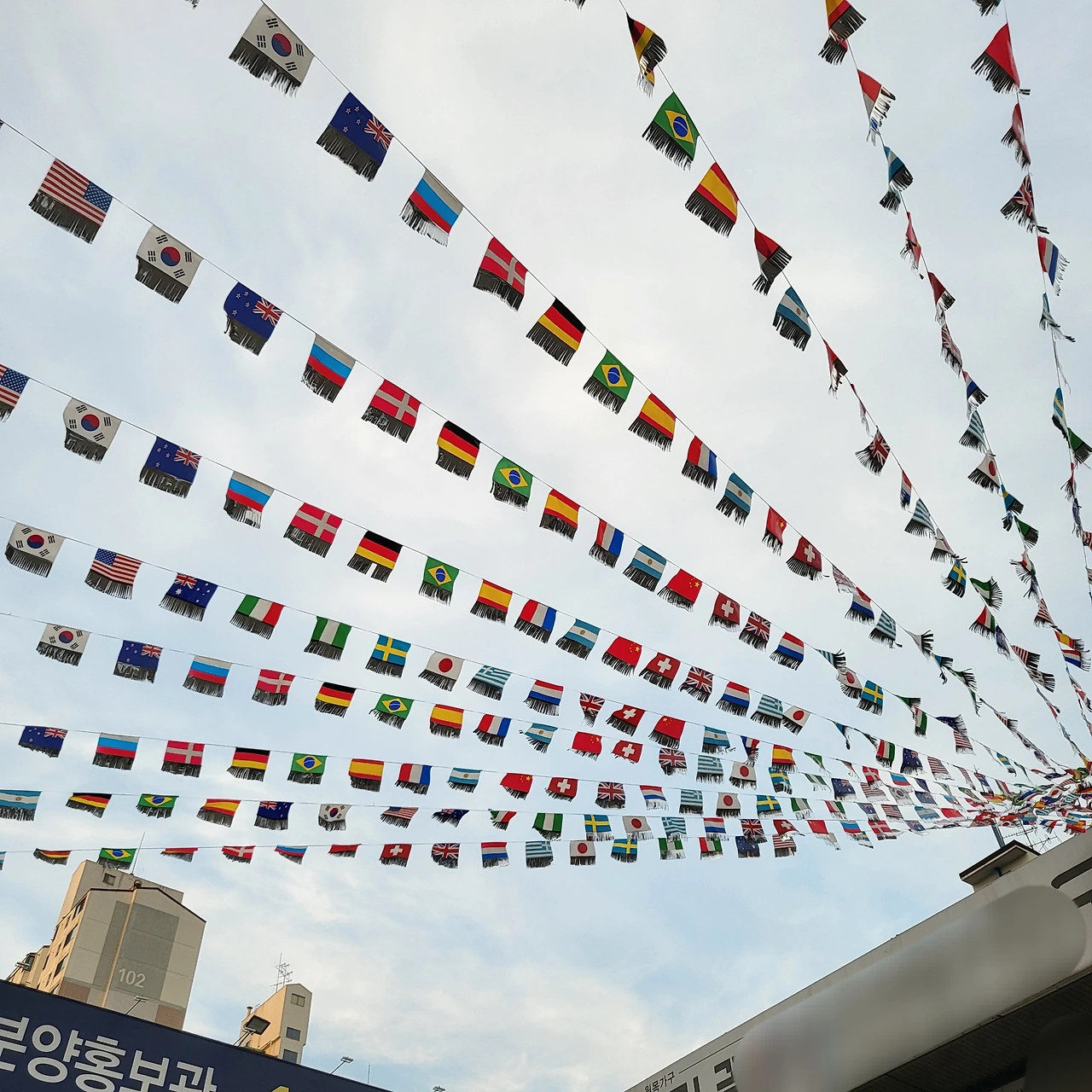랫가락과 안내 방송이 들리며 앞길이 들썩들썩한다. 하늘을 엮은 만국기가 주차장에 그늘을 만들었고 드나드는 차들과 사람들로 복잡했다.