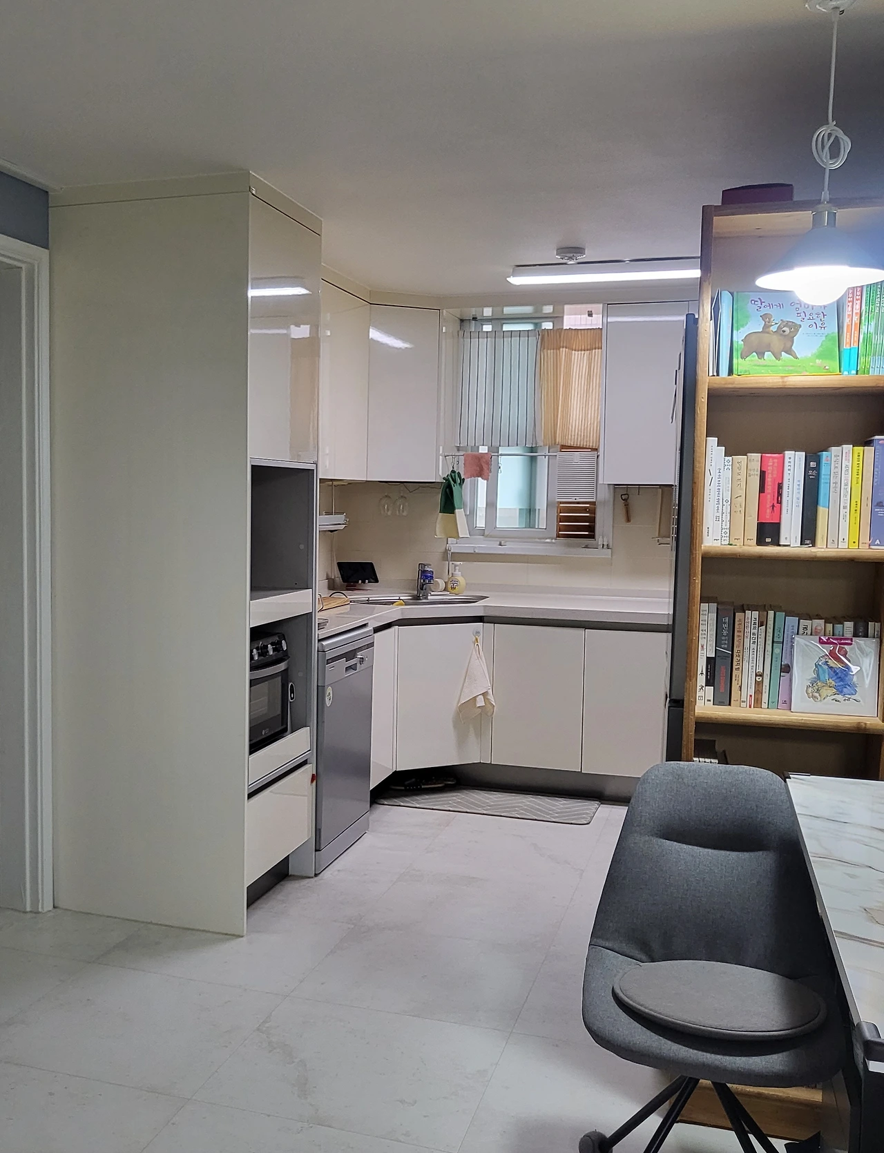 거실 중문 옆에 두 개를 나란히 놓고 중문 창 가리개 겸용으로 했고 나머지 하나는 내가 좋아하는 책들만 골라 꽂아서 주방 입구에 세웠다. 김치냉장고 옆과 뒤 공간을 함께 가리며 거실 쪽을 보게 놓고 그 앞에 조그만 공간을 만들었다