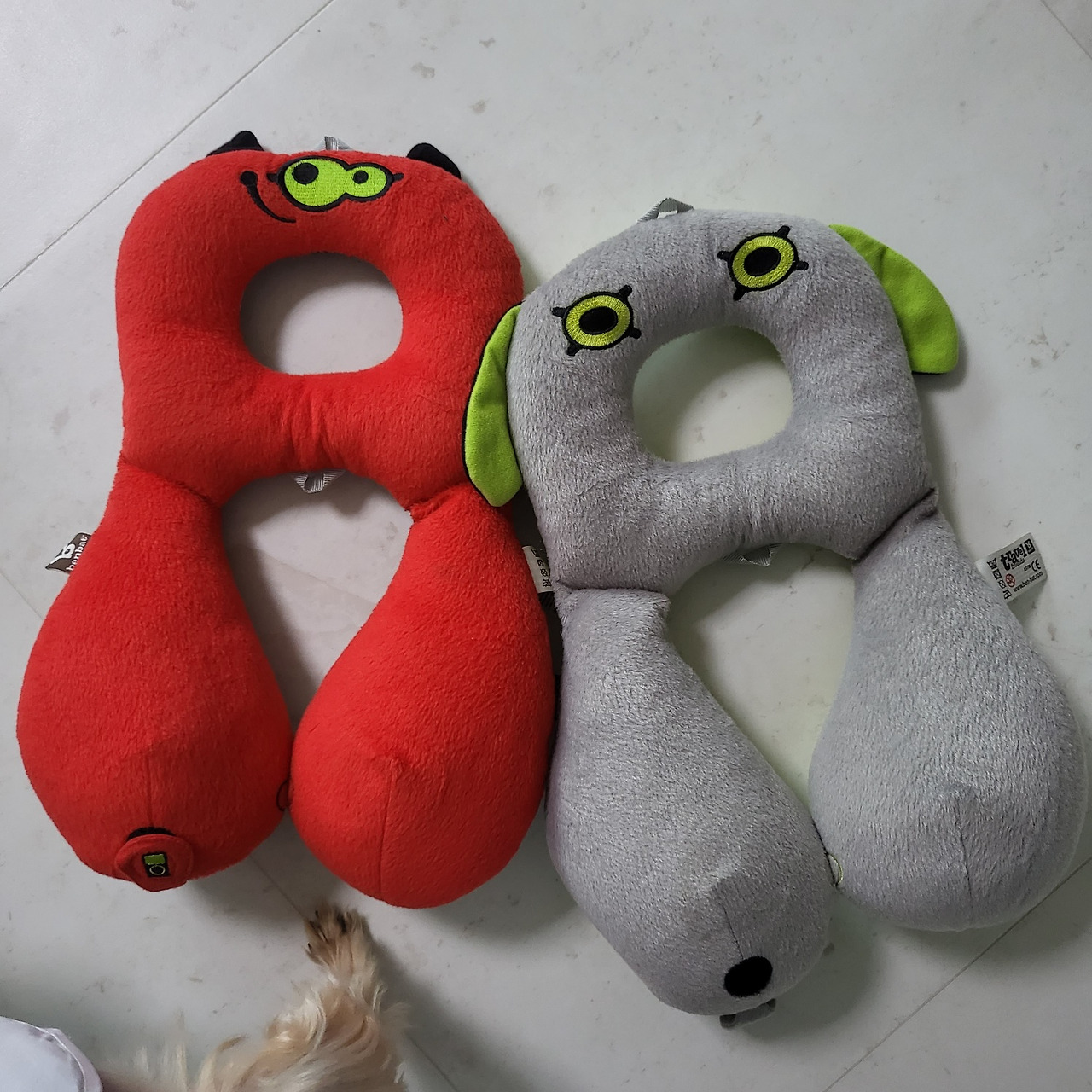 차에 있으면 유용한 큼직한 인형들과 무릎담요