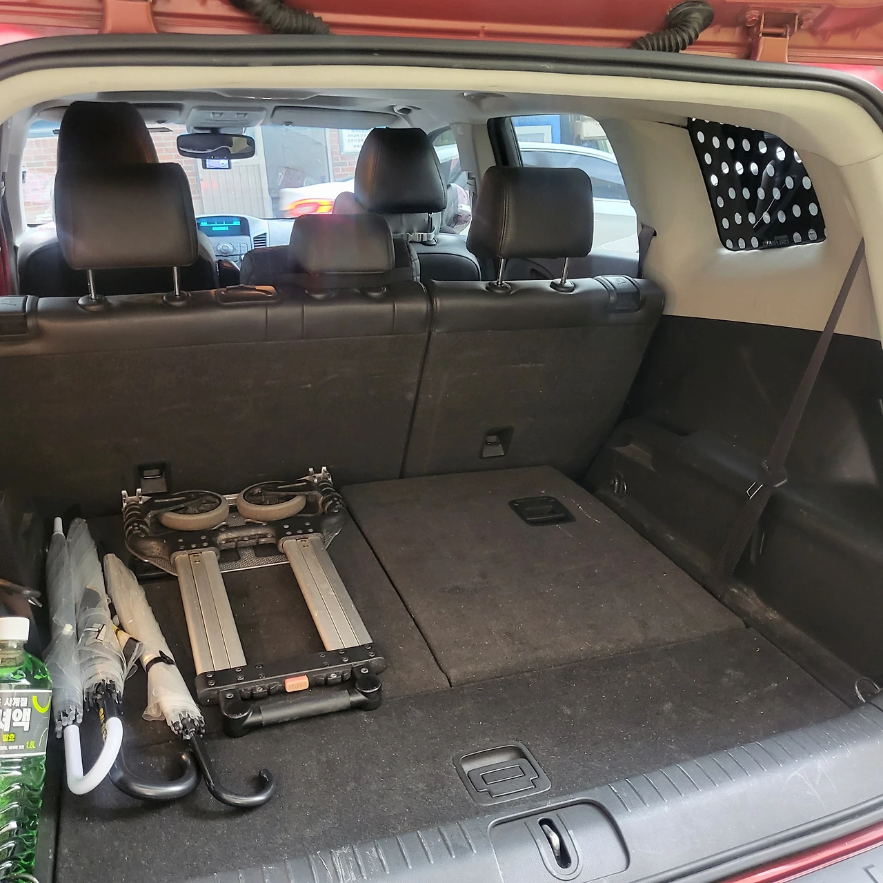우리 차는 7인승인데 맨 뒤 3열을 접어 트렁크로 쓰게 돼 있다.