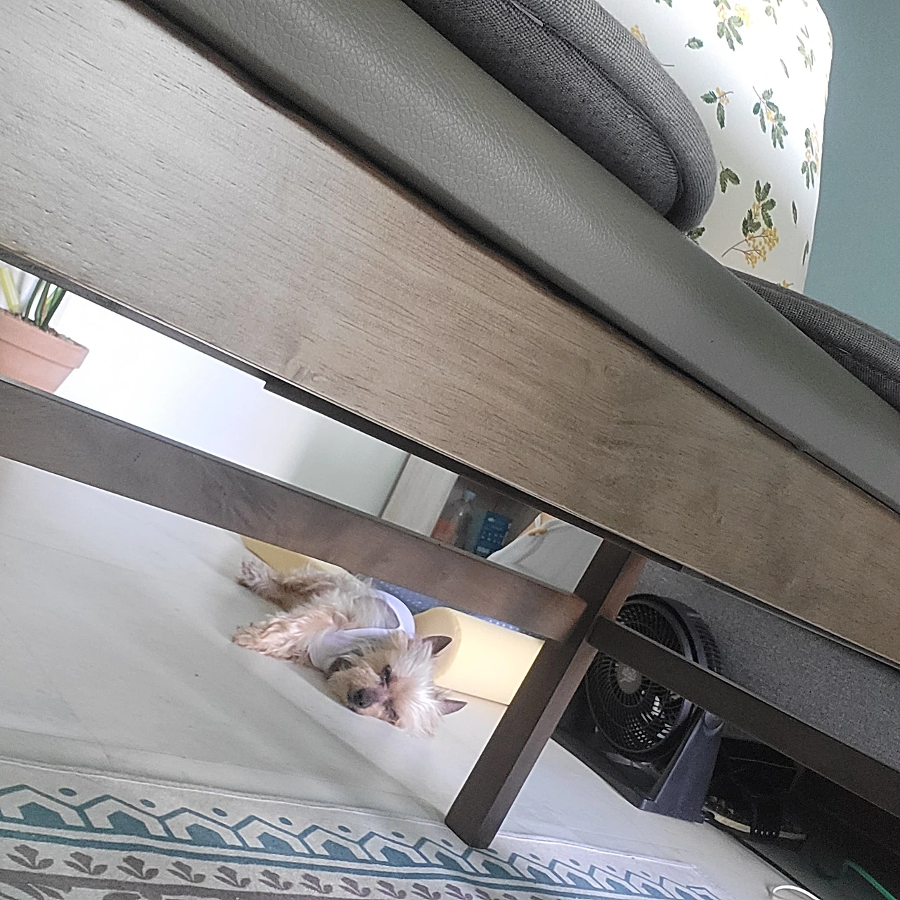 맨몸보다 개의 몸에 잘 맞는 옷을 입히면 안정에 도움이 된다고 한다. 최근에 등의 탈모가 심해져서 허전할까 봐 입혀 놓았던 내의를 벗겼는데 오늘 다시 입혔다. 다행히 내가 입고 싶을 만큼 보드랍고 얇은 여름용 쿨러닝이 있다.