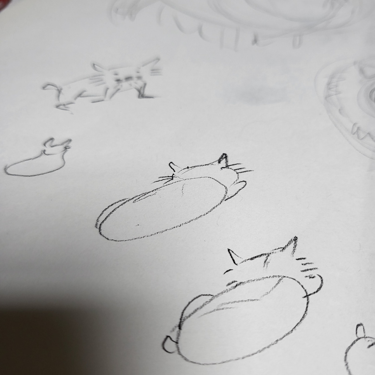 우리 집 노견이 웅크리고 자는 뒷모습을 보고 그려 본 것이다. 머리와 몸통의 원 두 개를 상상해서 그렸다.