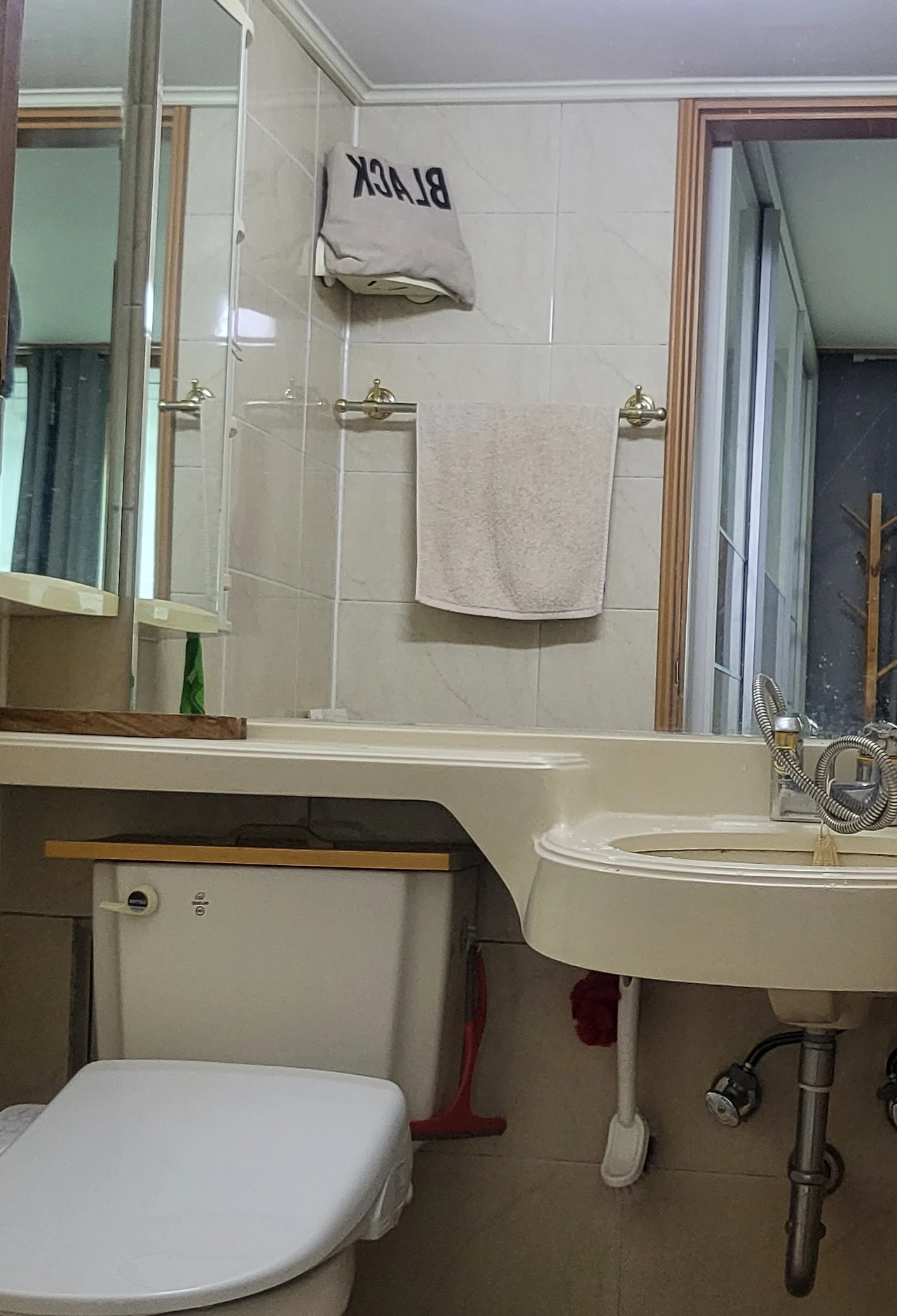 예쁘지는 않지만 온수냉수 잘 나오고 잘 빠지고 이웃집에 누수 없고 기본 기능을 잘해 주는 오래된 욕실이다.