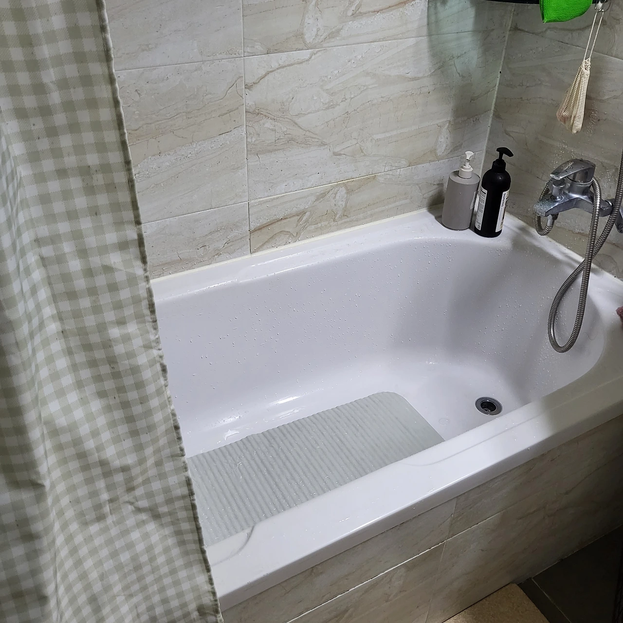 노견을 씻길 때 깔면 바닥이 폭신하고 안전해서 좋고 누가 집에 올 때 스크래치가 많은 낡은 욕조 바닥에 슬쩍 깔면 깨끗해 보인다.