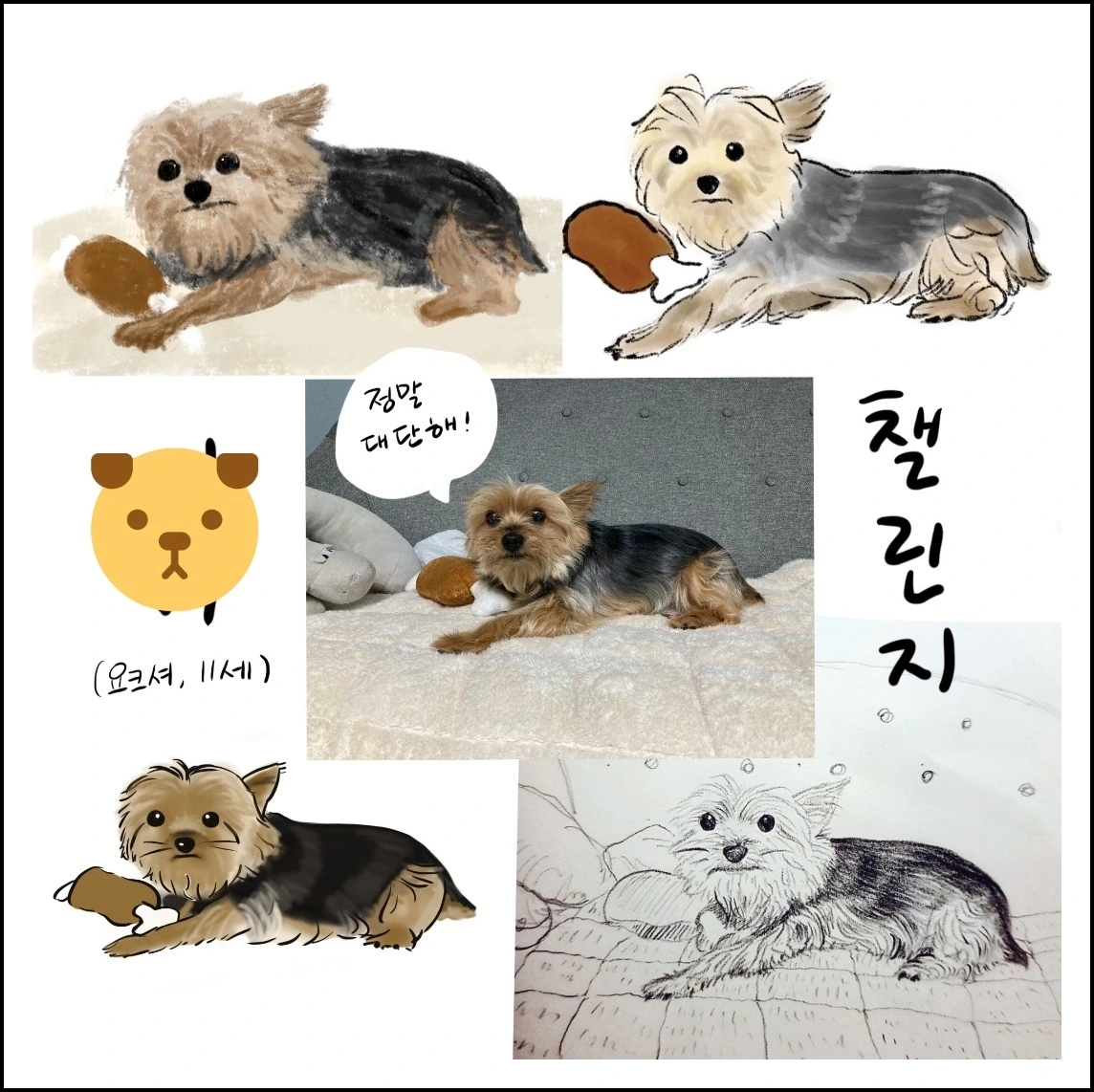 몇 년 전에 자기들끼리 우리 개 그리기 챌린지를 했다며 큰딸이 보내준 사진은 소중히 간직하고 있다.