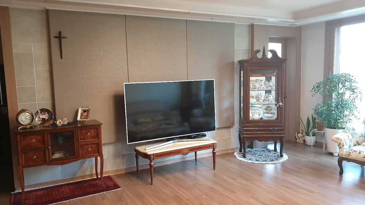 선배 K는 연령대가 60을 바라보는 분이라 거실의 분위기도 달랐다. 그레이톤 바닥과 벽지를 배경으로 배치된 예스러운 가구나 소품은 주부의 확실한 취향을 보여준다.