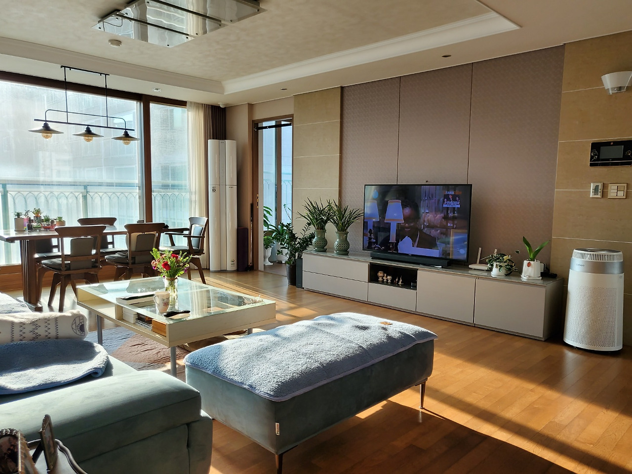 한국의 국평이라는 32평 아파트 구조는 건축연도에 따라 2베이, 3베이, 4베이로 정형화돼 있어 엇비슷하나 그 안에 담긴 거실의 표정은 집주인과 닮았다. 최근 몇 년간 인테리어를 새로 한 집들이 거의 똑같이 화이트 톤의 벽과 바닥을 바탕으로 하지만 거실장과 주변의 가구와 오브제들이 집안의 분위기를 만든다.