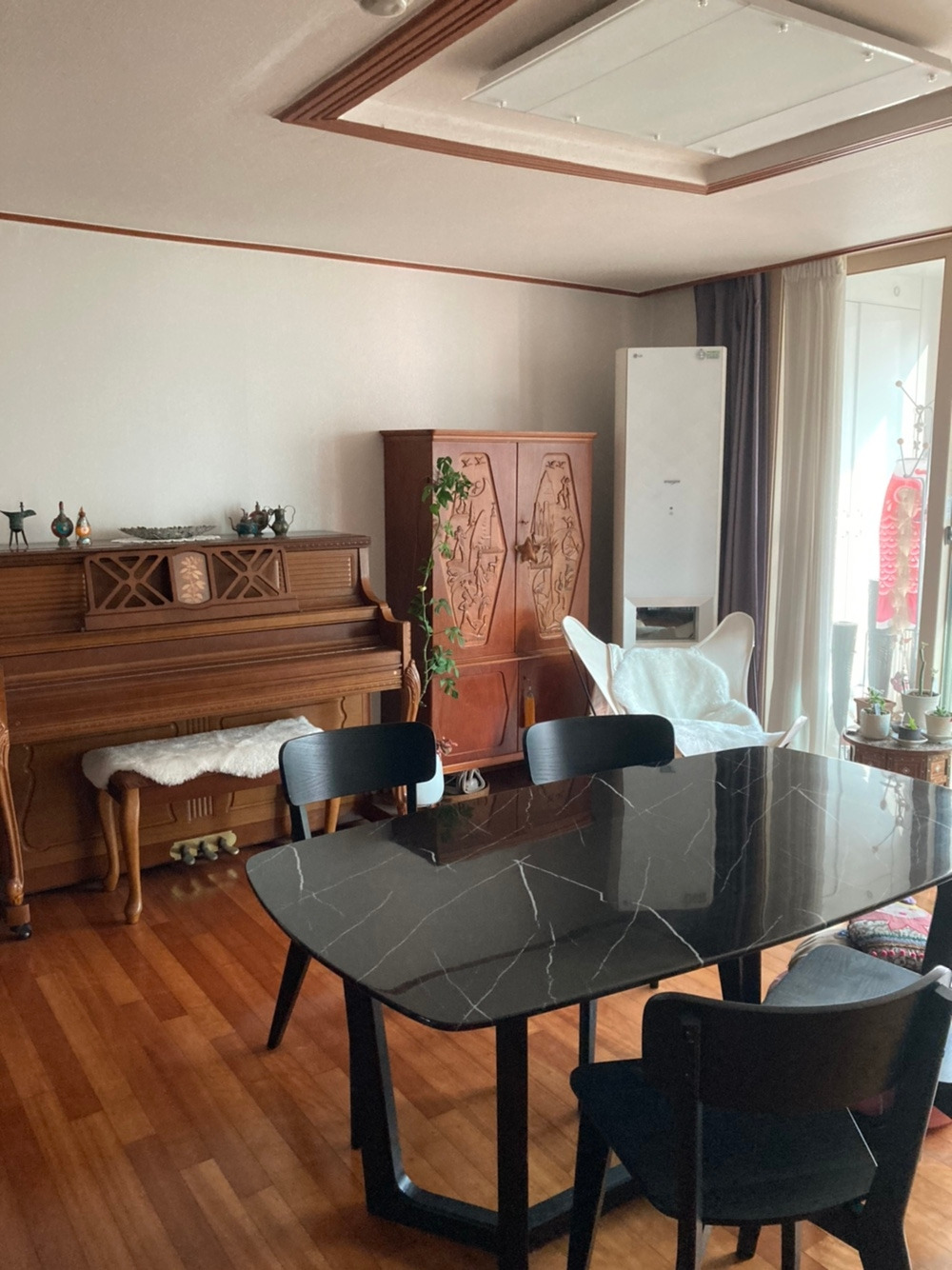 외국생활을 오래 한 후배 K의 거실은 우리에게 익숙한 모습은 아니다. 거실 가구의 대명사인 티브이와 소파가 아닌 피아노와 수납장, 4인 가족의 식탁과 크고 작은 책꽂이가 있다.