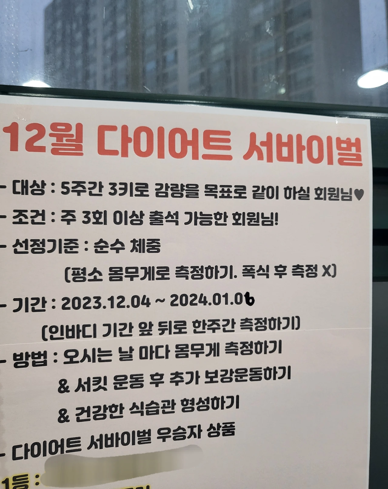 다음 달은 5주간의 다이어트 챌린지라고 대문짝만 한 공지가 붙었다.