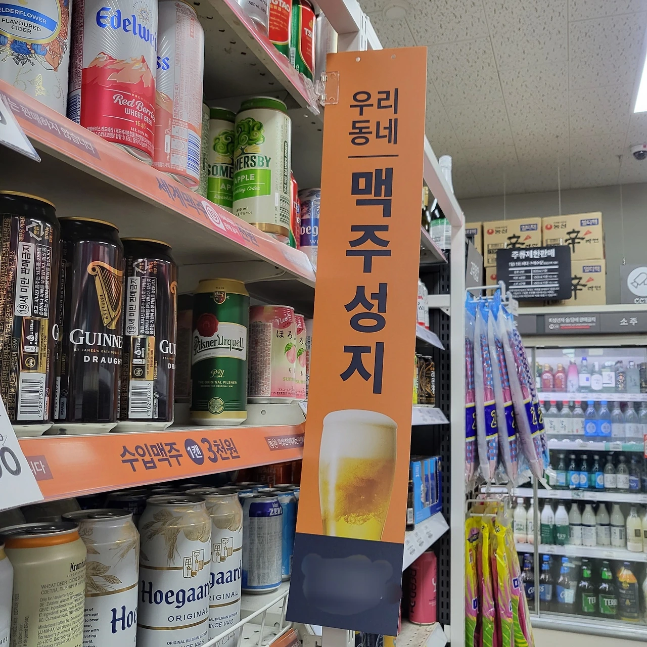 오늘의 운동을 마치고 1층 마트에 들렀다. '맥주 성지'라는 광고를 무시하면 섭섭할 테니 주말 저녁을 위한 캔 몇 개를 담는다.
