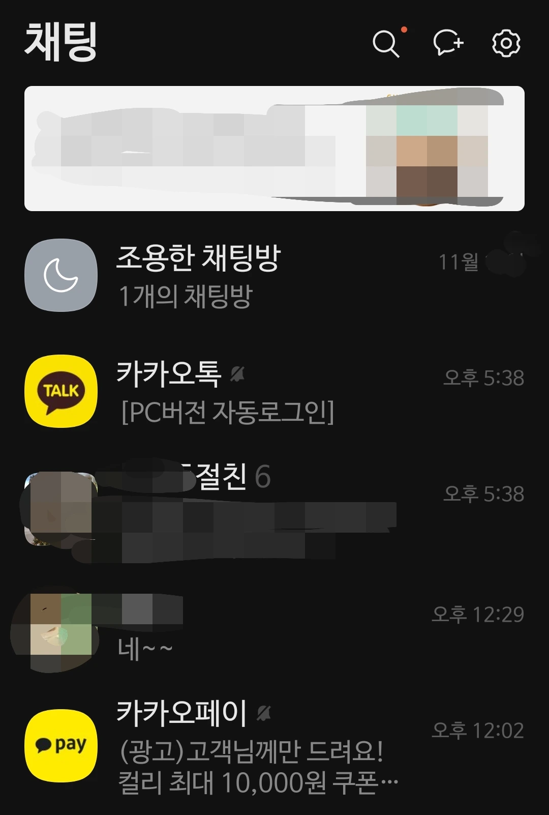 조용한 채팅방으로 관리하면 빨리 읽으라고 추궁하는 새 톡의 빨간 숫자도 보이지 않는다.