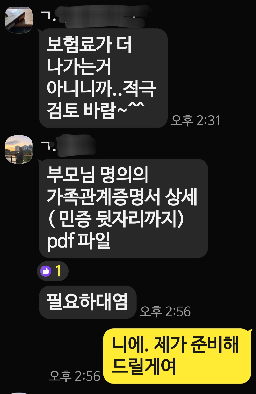 남편이 가족 톡방에 '건강보험에 올려줄 딸'을 구하는 공고를 냈다. '본인을 피부양자로 올려도 부양자가 더 부담하는 금액이 없음'을 슬쩍 호소하는 게 웃겼다.