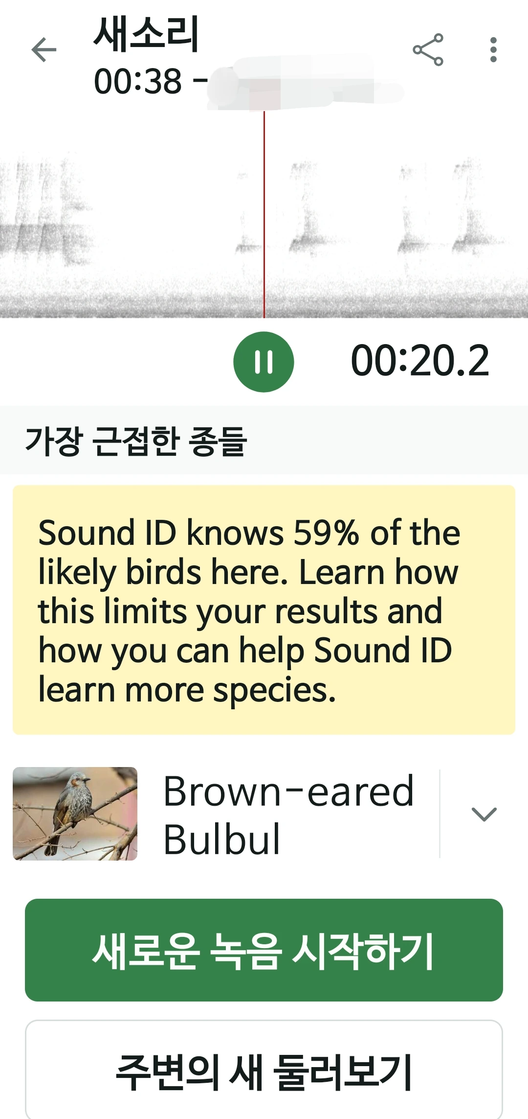 몇 초의 분석 후 멀린은 '59퍼센트의 확률로 Brown-eared Bulbul'이라는 판단을 내렸다. 찾아보니 '직박구리'란다. 직박구리가 어떻게 생겼나 했더니 어디서 본 듯 낯이 좀 익다. 직박구리는 일 년 내내 우리나라와 일본 전역에서 볼 수 있다니 우리는 어디에선가 분명 만난 적이 있는 사이다. 앱에서 직박구리의 울음소리를 재생했다. 내가 찾는 그 소리 같기도 하고 아닌 것 같기도 했다.
