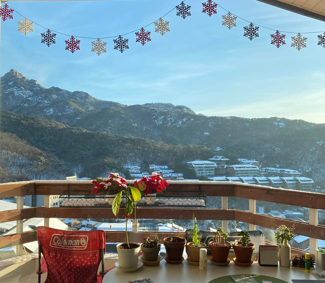 집주인은 적극적인 사회운동과 봉사활동을 바쁘게 하는 선배 S인데 여유시간에 남편과 둘이 발코니에 앉아 커피나 맥주 마시기를 좋아한다. 그래서 부부가 나란히 앉아 바라보는 큰 창에 단순하지만 생기 넘치는 가랜드를 달고 크리스마스를 보낸다.