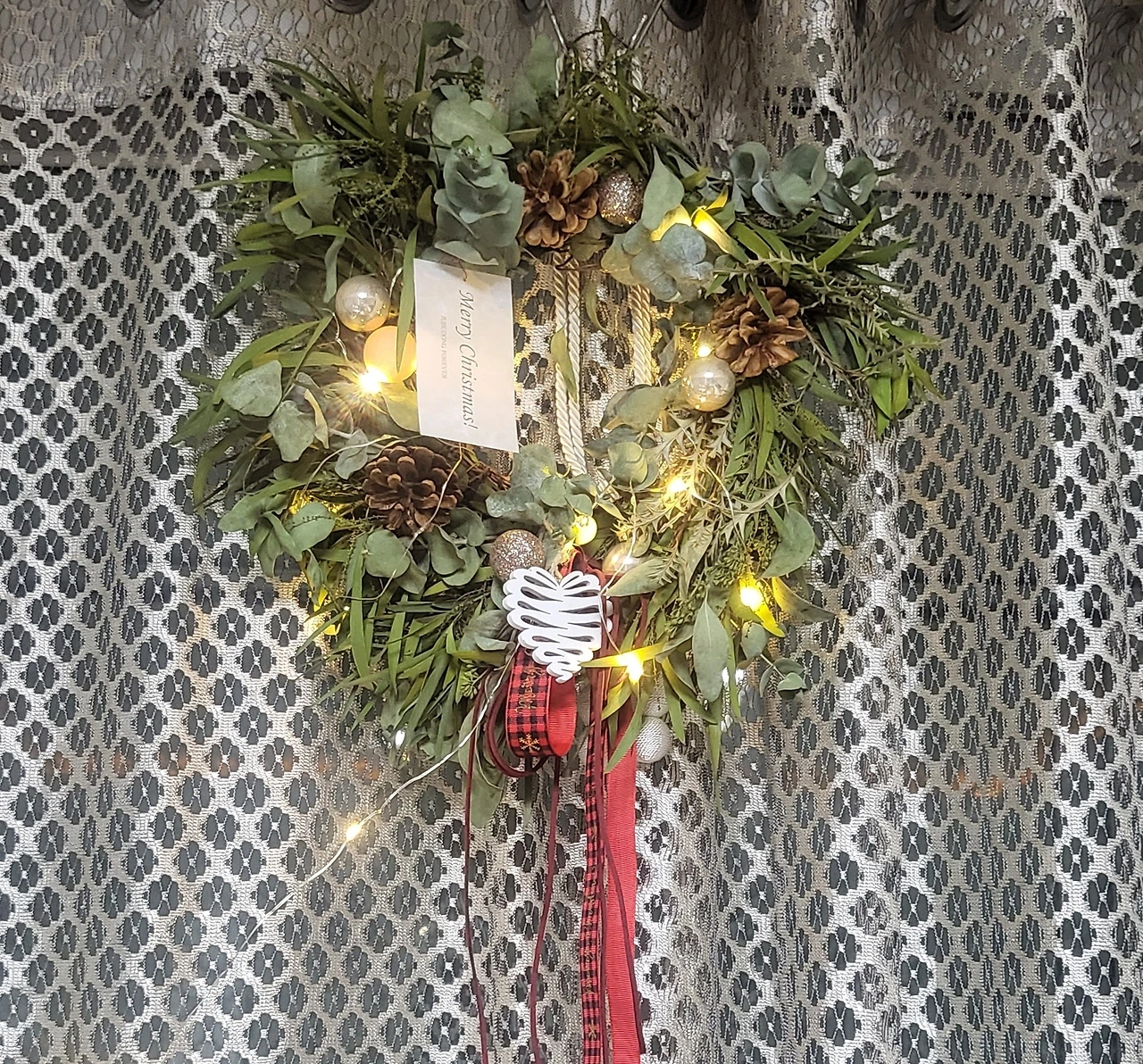올해는 친구 집에 모여서 크리스마스 리스를 만들었다. 여러 가지 생화로 만든 리스는 한철을 따뜻하게 밝히고 조용히 시들어갈 것이다.