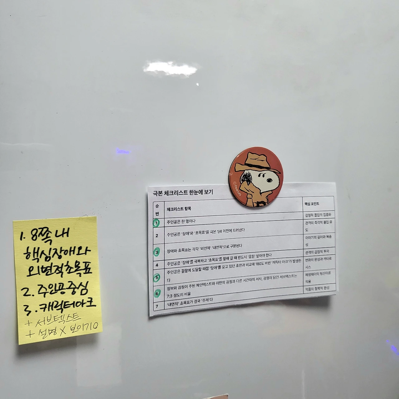 첫 수업 때 결성된 우리 조 인원이 적어서 줄거리부터 시작된 합평을 위해 다른 조와 합쳤다. 그렇게 되니 이번에는 일곱 명이 되었다. 지난번 네 장 줄거리 합평 때 겪어보니 일곱 명은 정해진 수업 시간 중에 충분한 피드백을 받기가 빠듯했다.