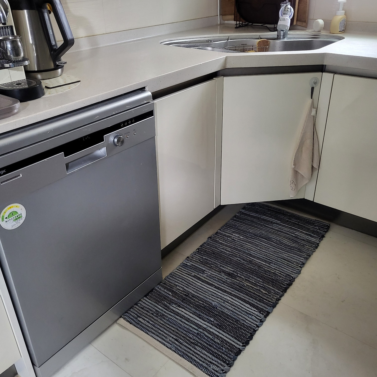 이번에 산 물건 중에는 싱크대 앞에 깐 기다란 천 매트가 있다.