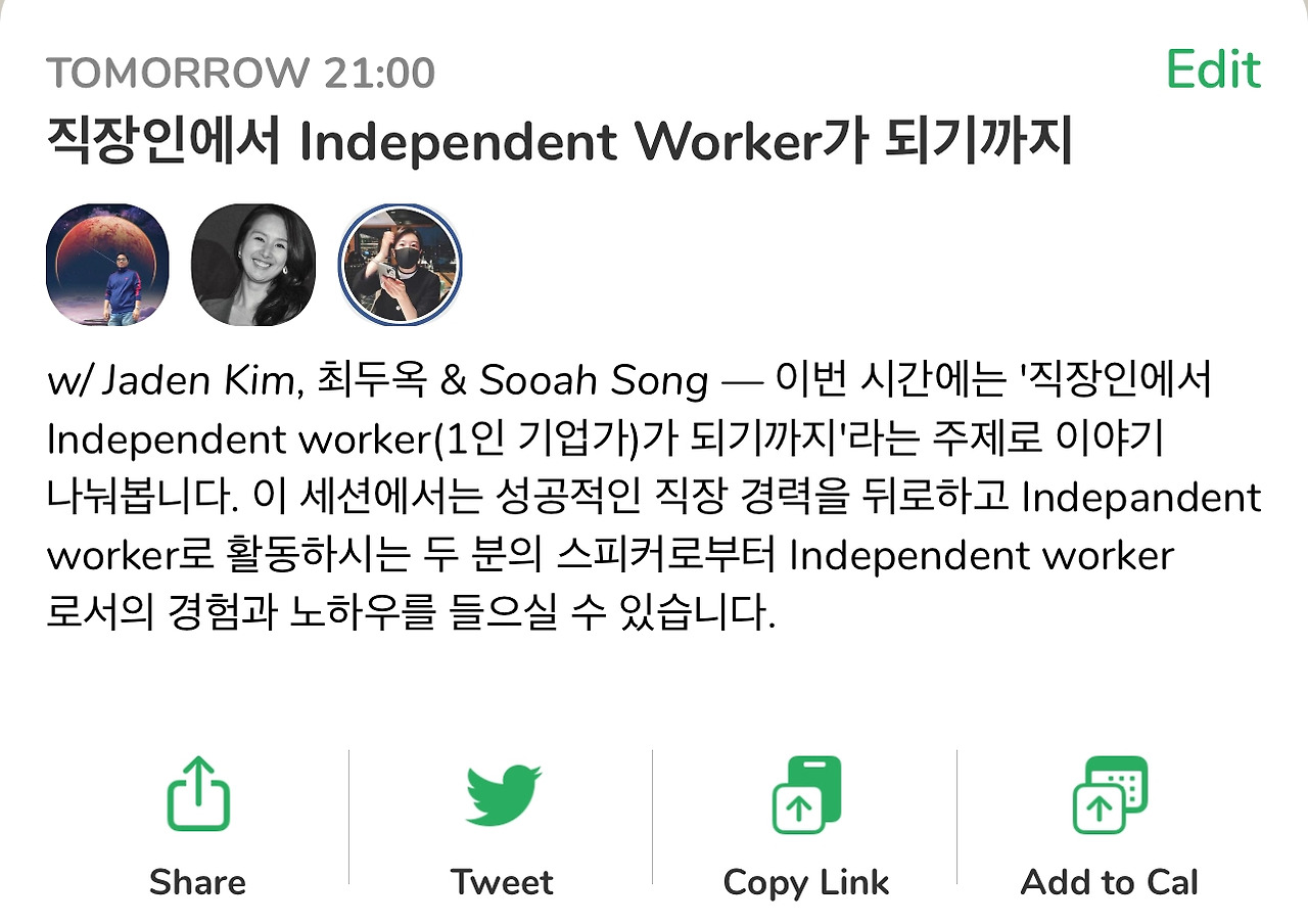 이번 주 목요일, 3월 25일 밤 10시 (한국시간) 클럽하우스 세션 안내 합니다.