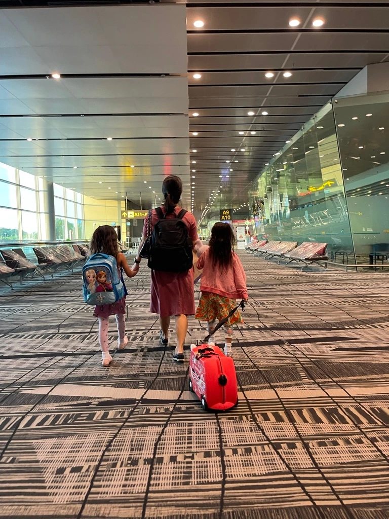 이런저런 허가에 많은 시간과 에너지를 쏟은 것과는 다르게 한국으로 들어오는 길은 쾌적했다. 공항에도 비행기에도 사람을 많이 찾아볼 수 없었다. 예전이라면 복잡했을 싱가포르 창이공항도 텅 비었고, 한국행 비행기 역시 뜨문뜨문 자리에 사람이 있을 뿐이었다. 비행편수도 적은 지 이륙과 착륙도 시간이 오래 걸리지 않았다. 때문에 5시간 반이 예정되어있던 비행은 5시간 만에 끝이나 인천 국제공항에 도착할 수 있었다. 반면 방역과 입국심사에는 꽤 시간이 걸렸다. 검역관은 자가격리 면제 서류와 백신 접종 서류를 확인했고, 또 다른 곳에서는 다른 담당자가 자가격리 앱 설치를 확인했다. 출국장을 나와서는 우리 가족이 적절한 서류를 가지고 있는지 다시 확인받았다. 이런 모든 절차를 마치고 나오니 착륙시간보다 1시간 뒤였다.