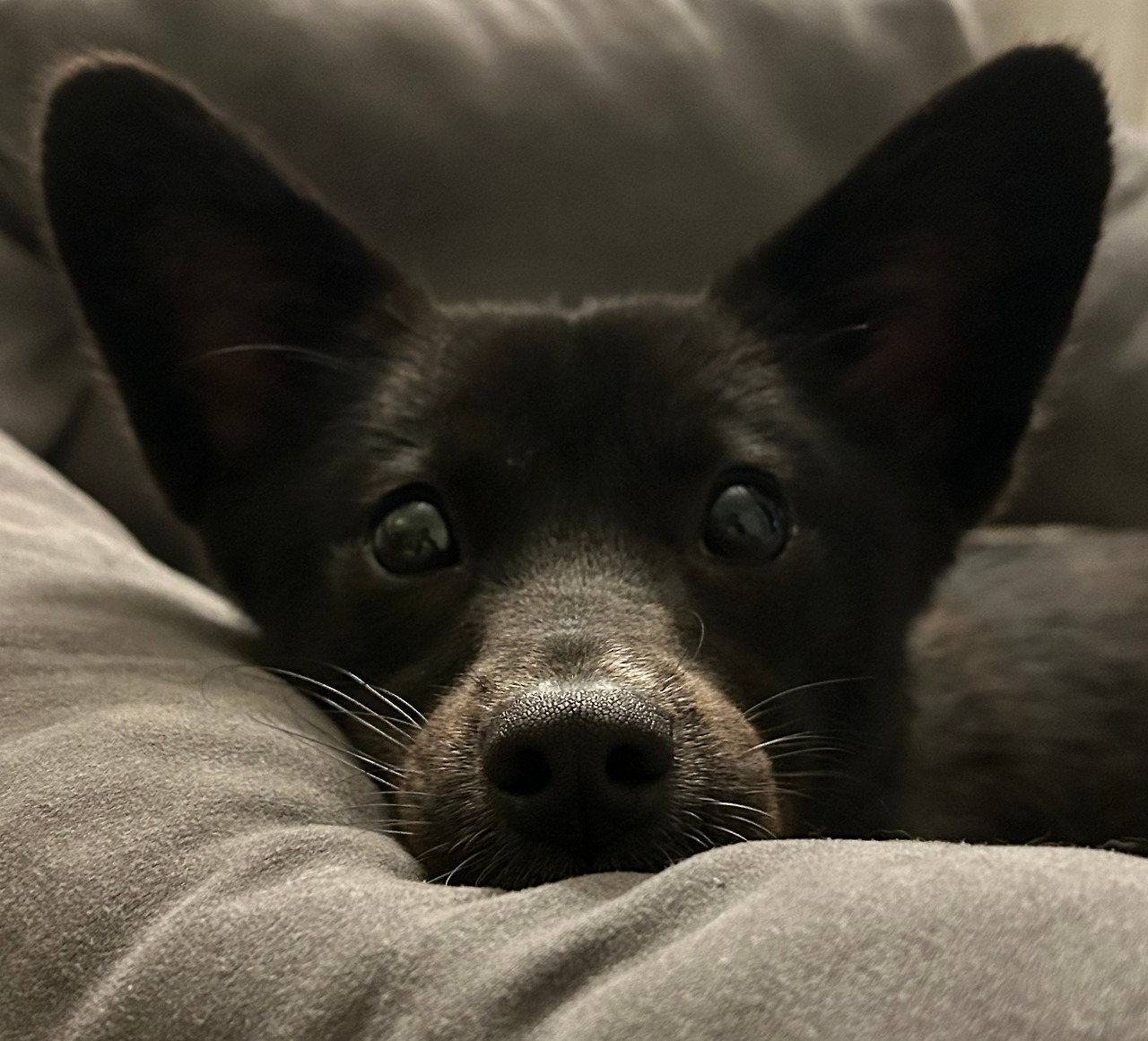 - 촉촉한 코, 그리고 너무 까매서 어두운 곳에서 보면 반짝반짝한 눈과 코밖에 안 보여요. 눈 감으면 강아지가 안 보여요.