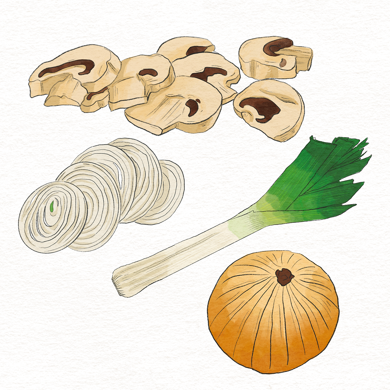버섯, 양파, 리크, 양배추 등 여러 채소를 넣은 다음 더 깊은 국물맛을 위해 치킨스톡과 고기(나는 주로 소시지를 쓴다)를 넣고 곰탕처럼은 아니지만 곰탕을 끓이는 마음으로 약불에 푹 끓여준다. 재료가 꼭 한창 다이어트 식품으로 유행했던 마녀수프 재료 같다.