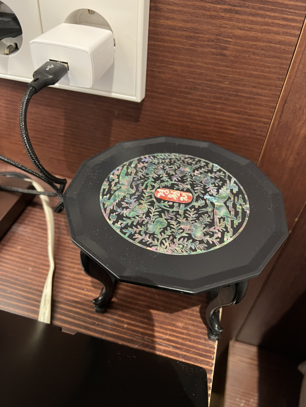 요 상처럼 생긴 것은 무엇인가 했더니 무선충전기입니다. 집에 들고 가고 싶게 생겼습니다. 다만 충전 효율은 아무래도 조금 떨어지더라고요.
