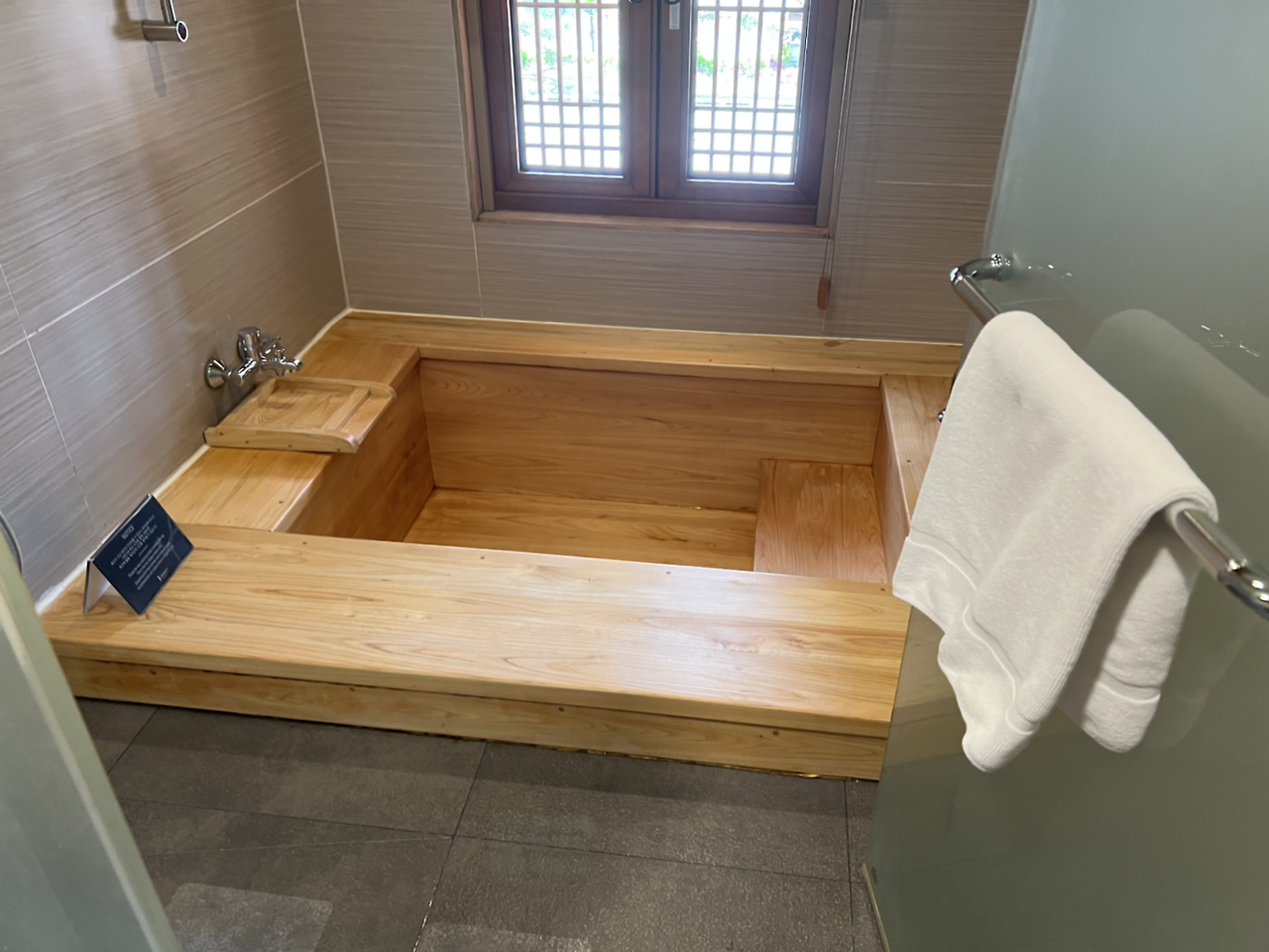 송도 경원재 호텔의 하이라이트 편백 욕조입니다. 아가 둥둥 수영을 시키면서 함께 목욕할 생각에 엄마 아빠가 더 신났습니다. 아직 아기라서 호텔 수영장에는 갈 수 없으니, 욕조가 잘 구비되어 있는 곳을 가장 1순위로 고민해서 경원재로 선택을 했습니다. 체크인을 하고 호텔 곳곳을 둘러봅니다.