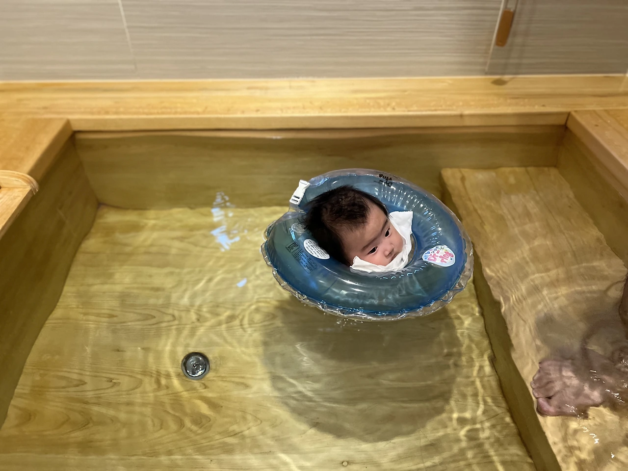 기다렸던 아기의 편백 욕조 수영 시간입니다. 여기 오기 전 친정 부모님 댁 욕조에서 세 번 정도 연습을 했습니다. 첨에는 아가도 많이 놀랐는데 점점 익숙해지더니 이제는 편안 표정으로 물장구도 치고 합니다. 아기에게도 물은 아주 익숙하고 친숙한 것 같습니다.